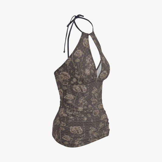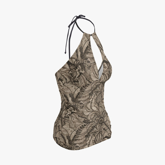Vampire Art Glam Halter String Bikini Swimsuit Set - Taupe Floral Gingham