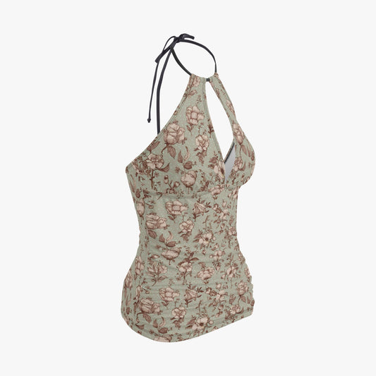 Vampire Art Retro Halter Two-Piece Tankini Swimsuit - Mint Green Vintage Florals