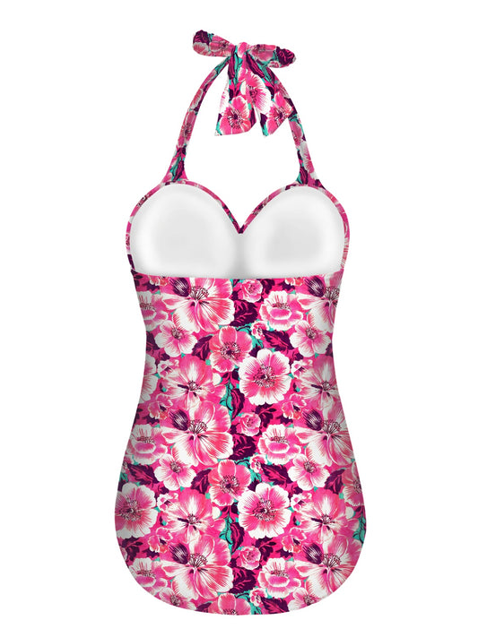 Vampire Art Vintage Chic Halter Neck One-Piece Swimsuit - Retro Surf in Pink