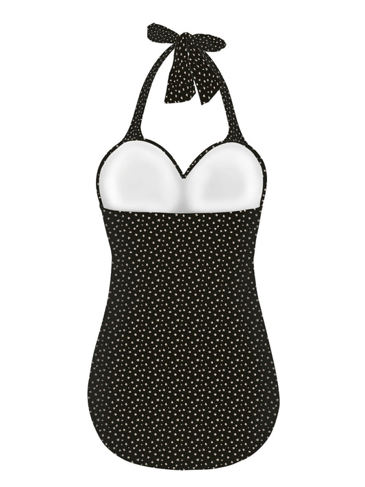 Vampire Art Vintage Chic Halter Neck One-Piece Swimsuit - Mini Roses in Black
