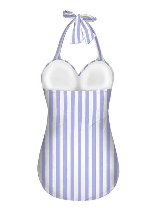 Vampire Art Vintage Chic Halter Neck One-Piece Swimsuit - Blue Mediterranean Stripes
