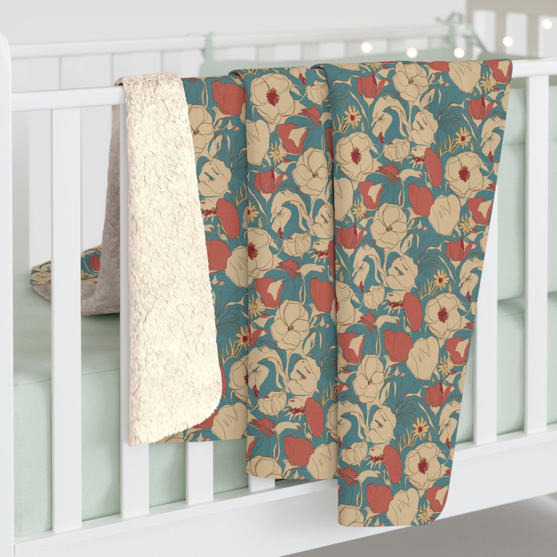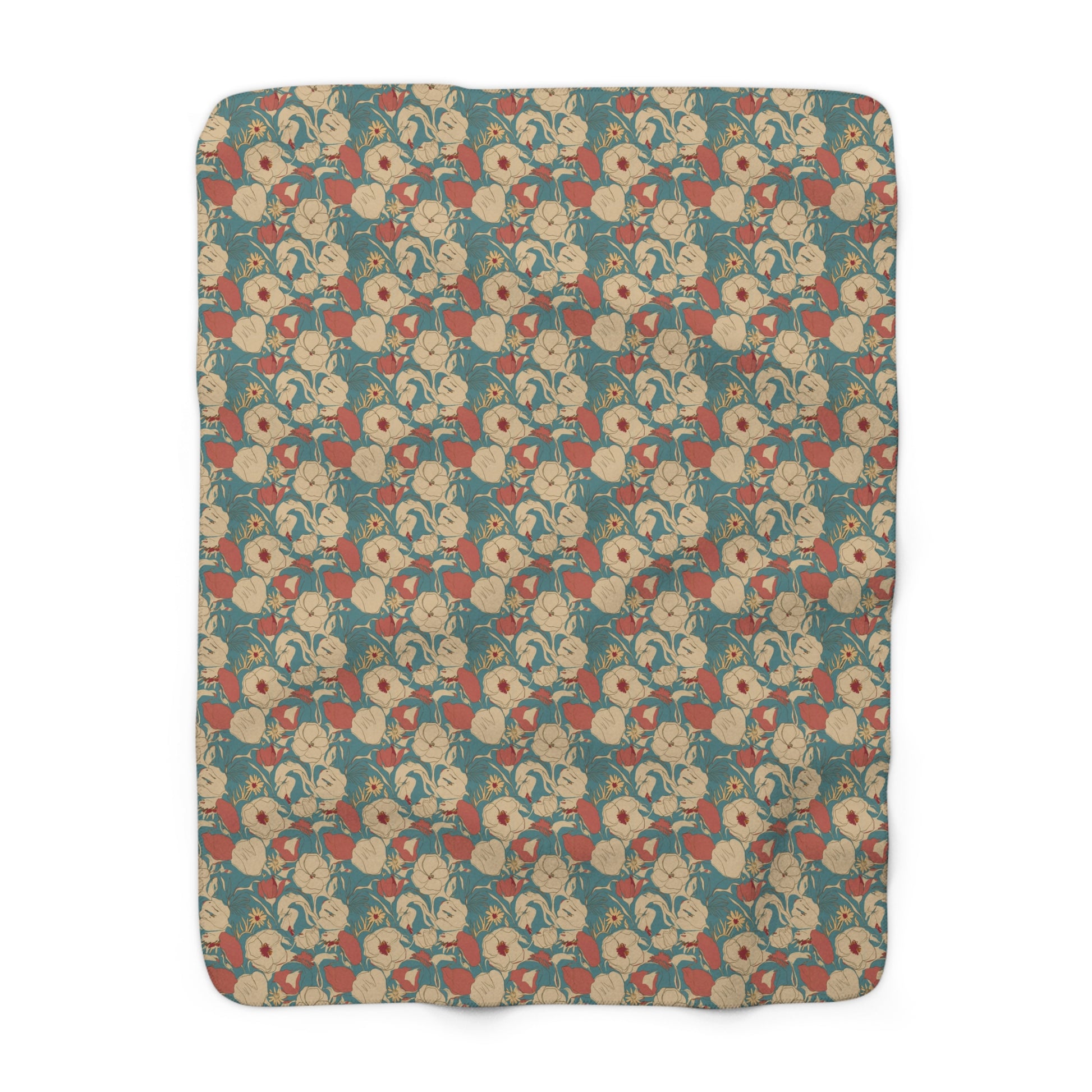 Vampire Art Nostalgic Dream Luxury Sherpa Fleece Blanket - Aged Surfy 1960s Flowers in Blue