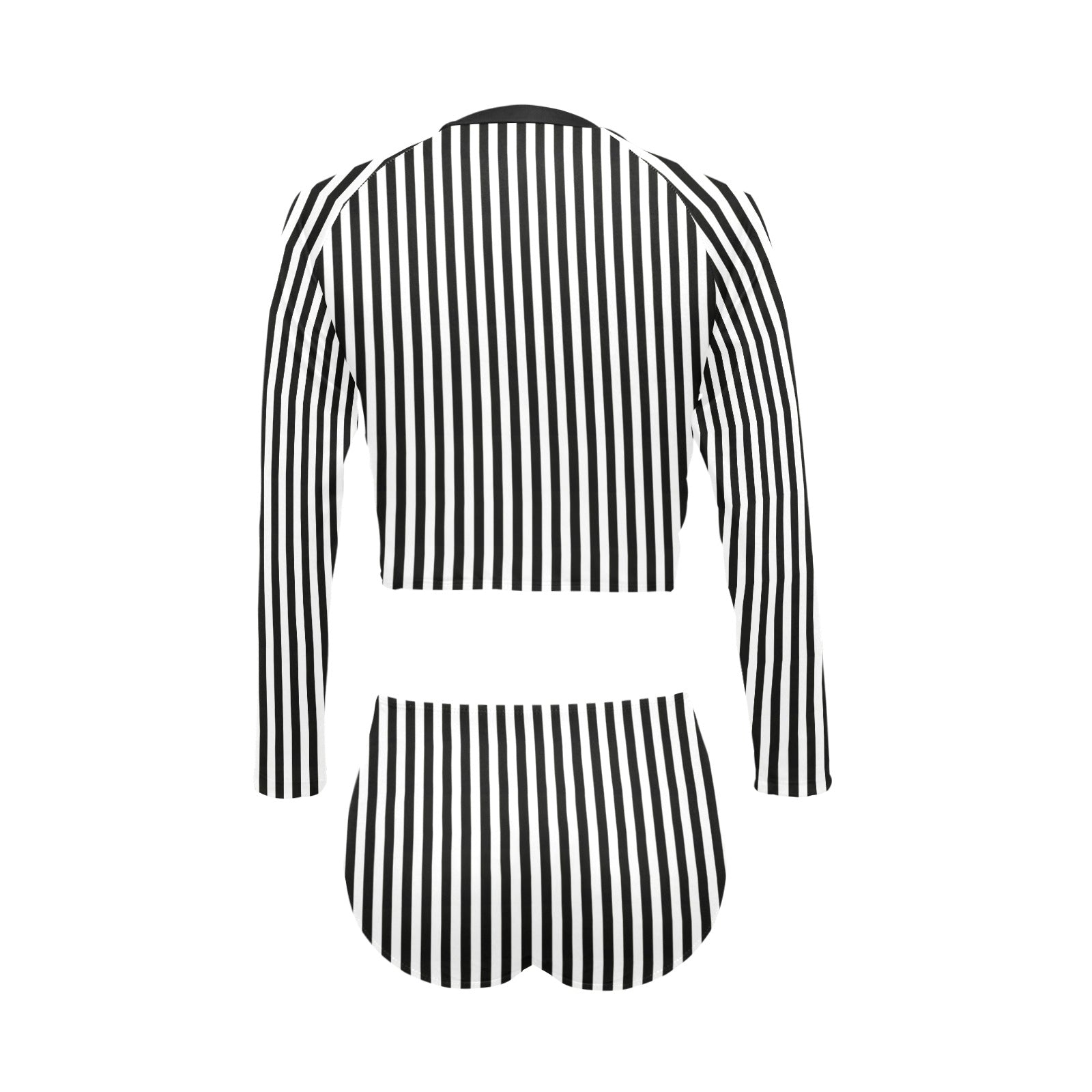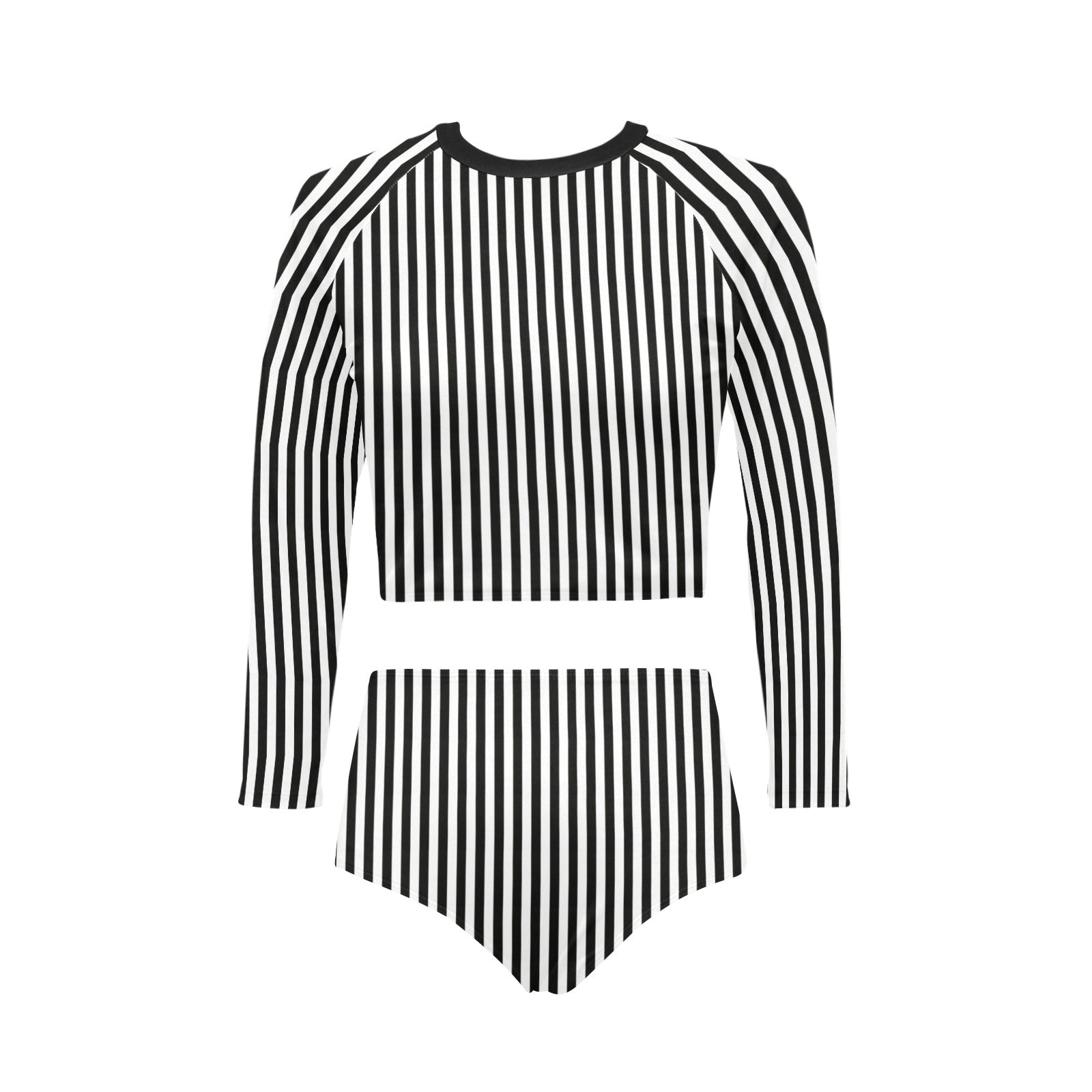 Vampire Art Women's Long Sleeve Bikini Set - Black and White Stripes