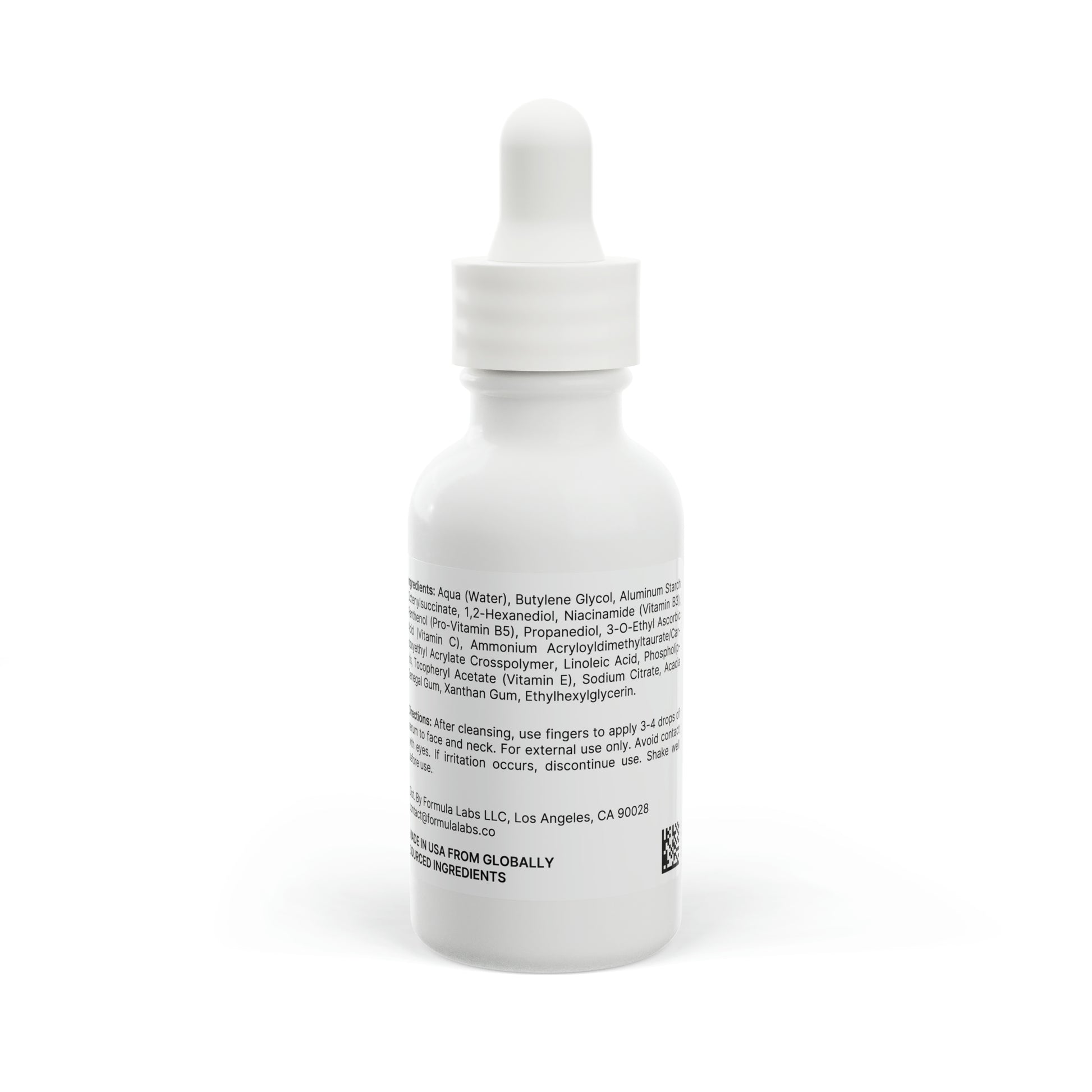Ingredients: Aqua (Water), Butylene Glycol, Aluminum Starch Octenylsuccinate, 1,2-Hexanediol, Niacinamide (Vitamin B3), Panthenol (Pro-Vitamin B5), Propanediol, 3-O-Ethyl Ascorbic Acid (Vitamin C), Ammonium Acryloyldimethyltaurate/ Carboxyethyl Acrylate Crosspolymer, Linoleic Acid, Phospholipids, Tocopheryl Acetate (Vitamin E), Sodium Citrate, Acacia Senegal Gum, Xanthan Gum, Ethylhexylglycerin.Free of parabens, formaldehydes, formaldehyde-releasing agents, phthalates, mineral oil, oxybenzone, coal tar, hydroquinone, sulfates SLS & SLES, triclocarban, triclosan, and synthetic fragrance.