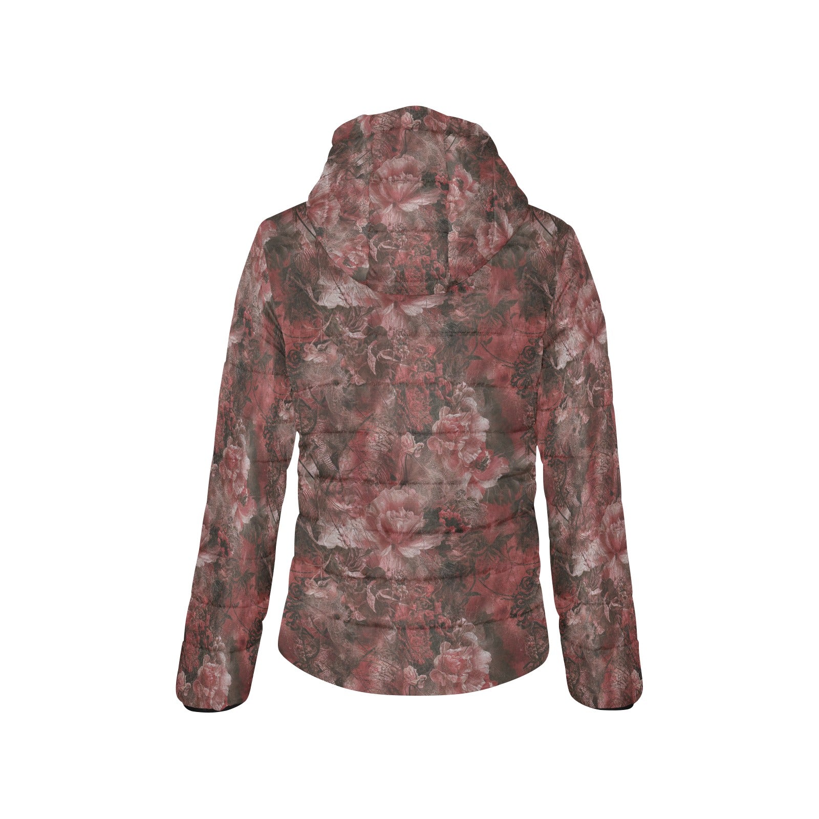 Vampire Art Urban Gothic Women's Padded Hooded Jacket - Grunge Red Lace and Roses