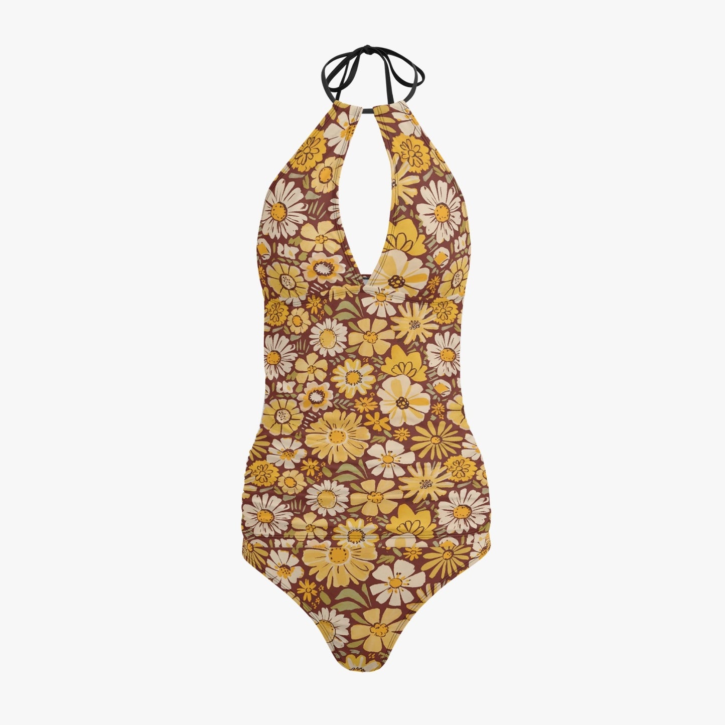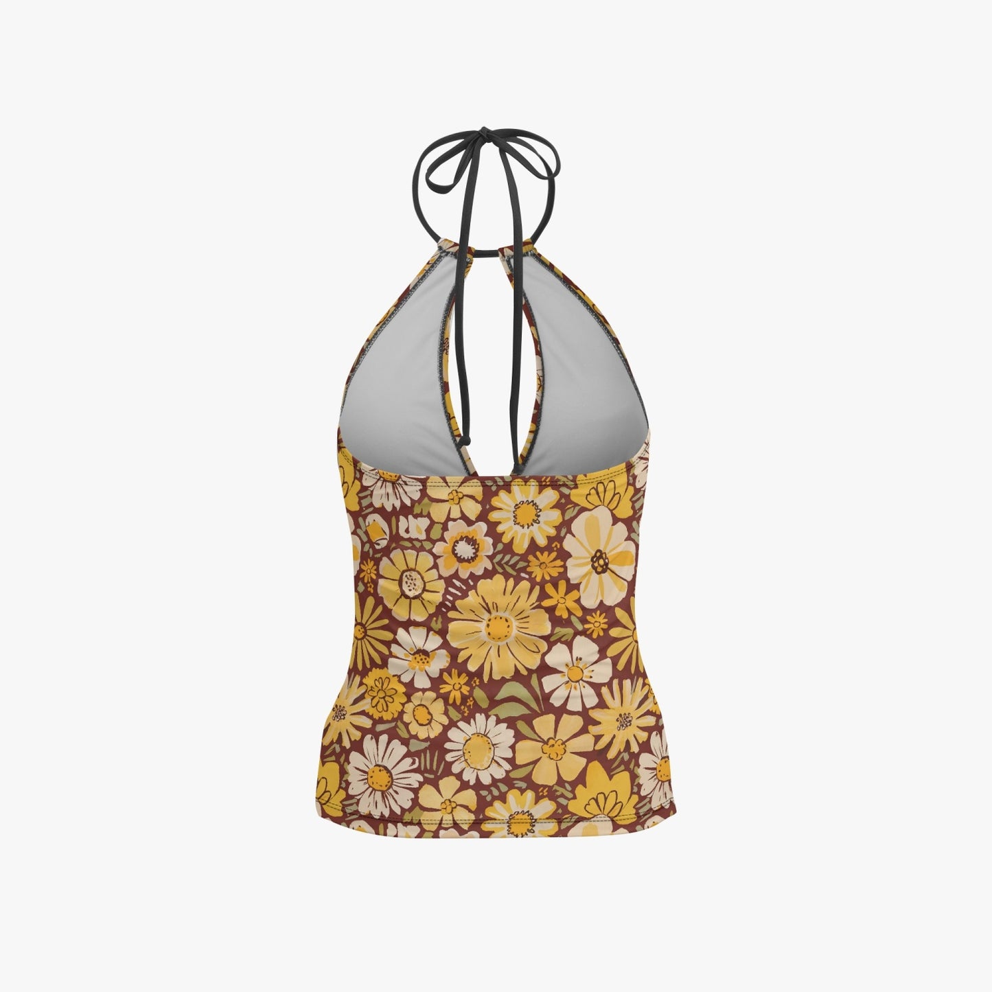 Vampire Art Retro Halter Two-Piece Tankini Swimsuit - Boho Florals in Brown and Yellow