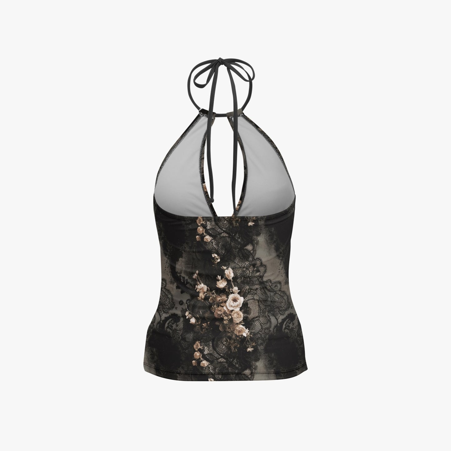 Vampire Art Retro Halter Two-Piece Tankini Swimsuit - Grunge Lace and Roses Print