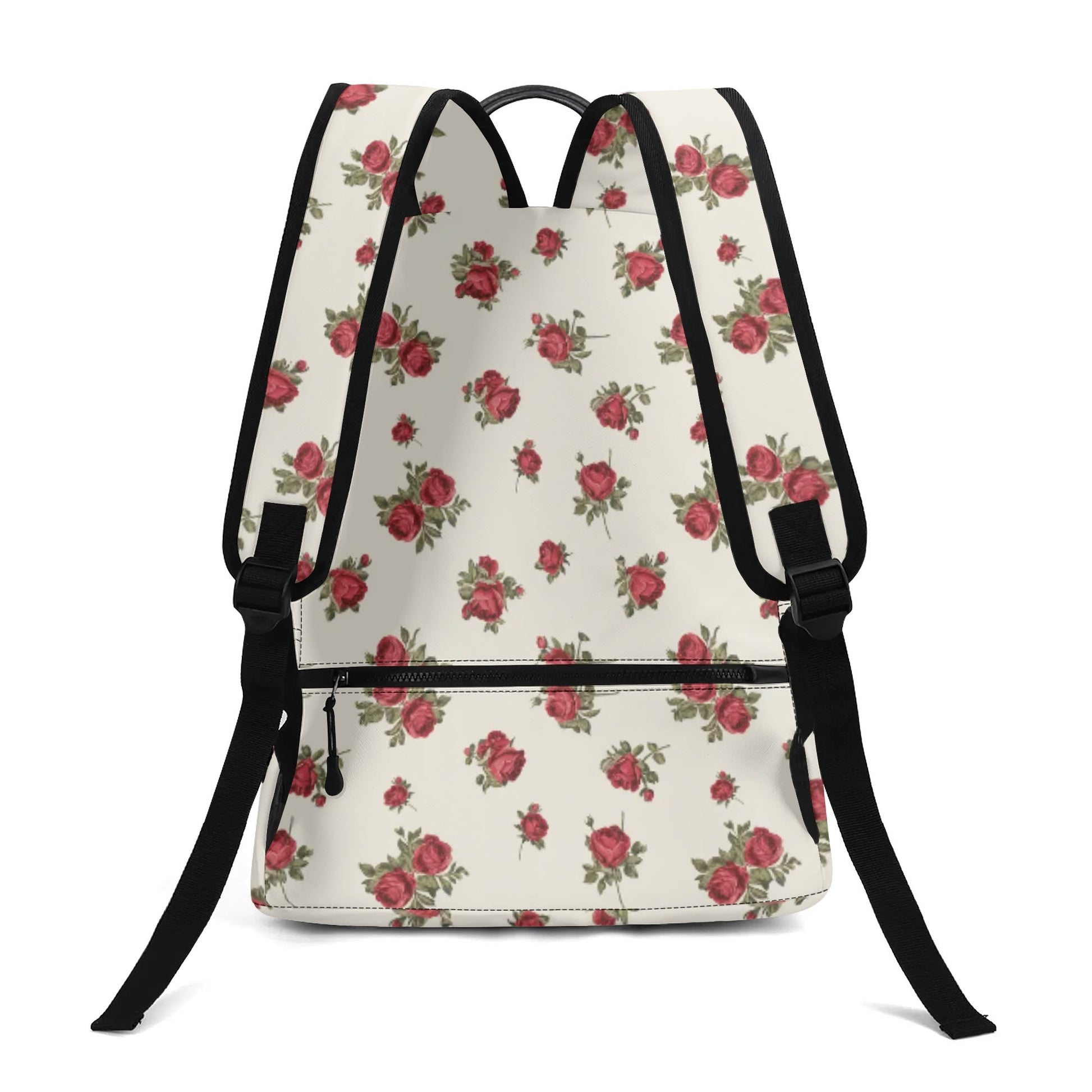 Vampire Art Retro Chic Vegan Leather 17 inch Back to School Twill Backpack - White with Red Roses