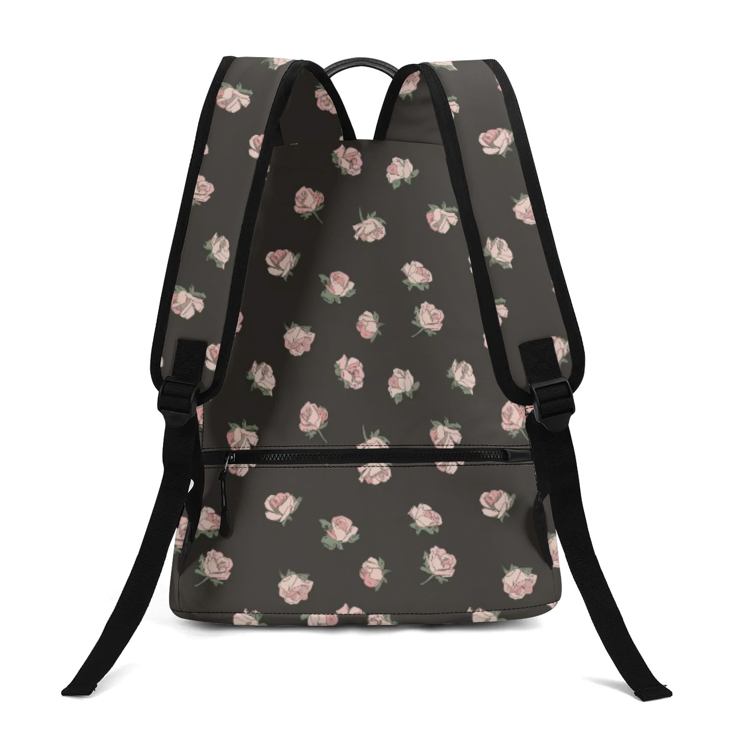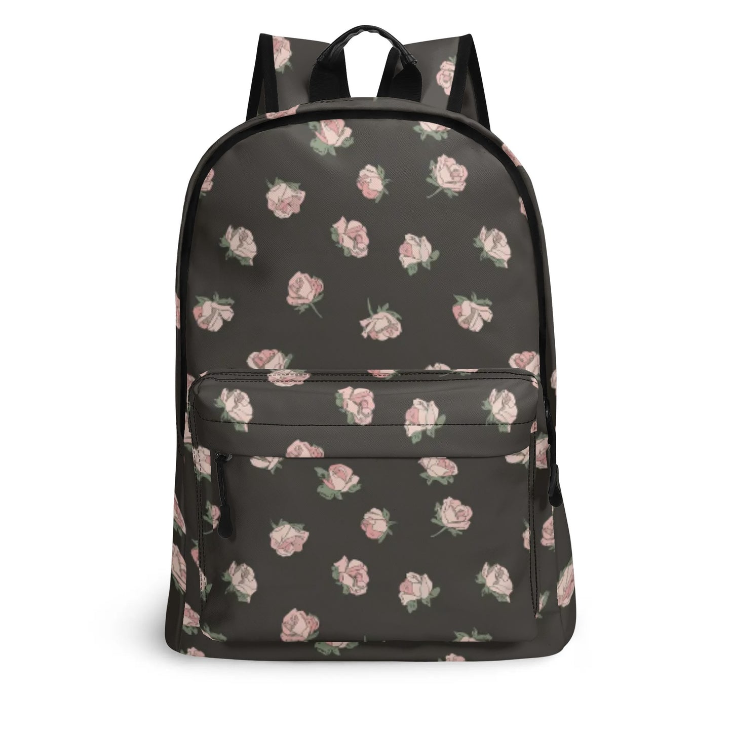 Vampire Art Retro Chic Vegan Leather 17 inch Back to School Twill Backpack - Black with Pink Roses