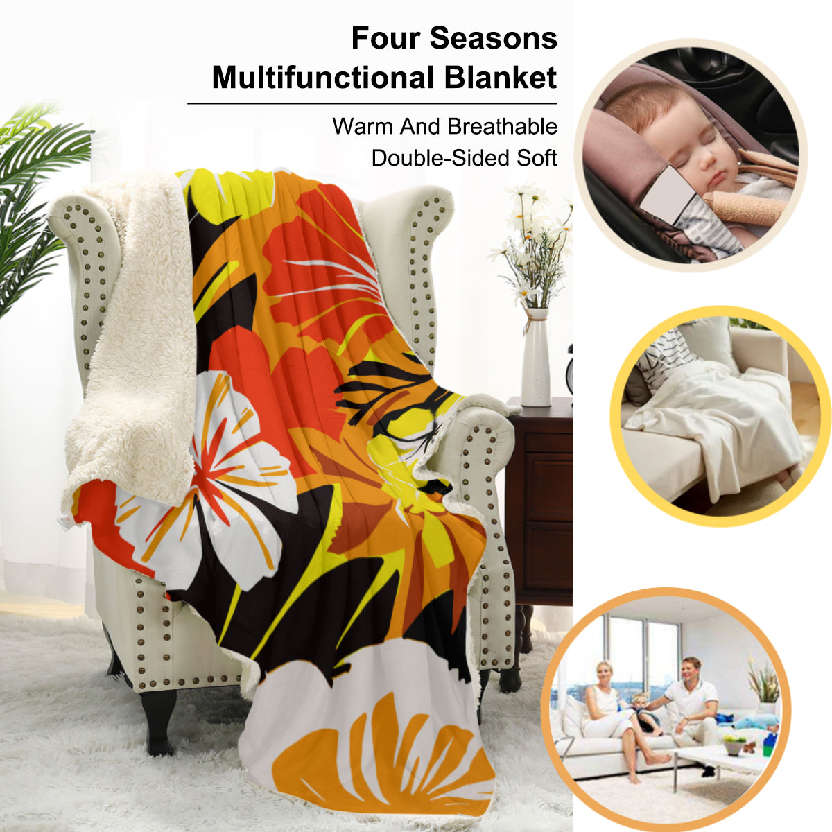 Vampire Art Retro Bold Chic Florals Sherpa Thick Blanket - Retro Surfy Yellow and Orange Flowers
