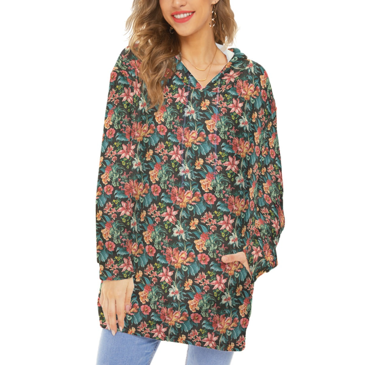 Vampire Art Retro Cosy Hooded Unisex Flannel Plush Fleece Blanket With Pocket - Surf Retro Flowers