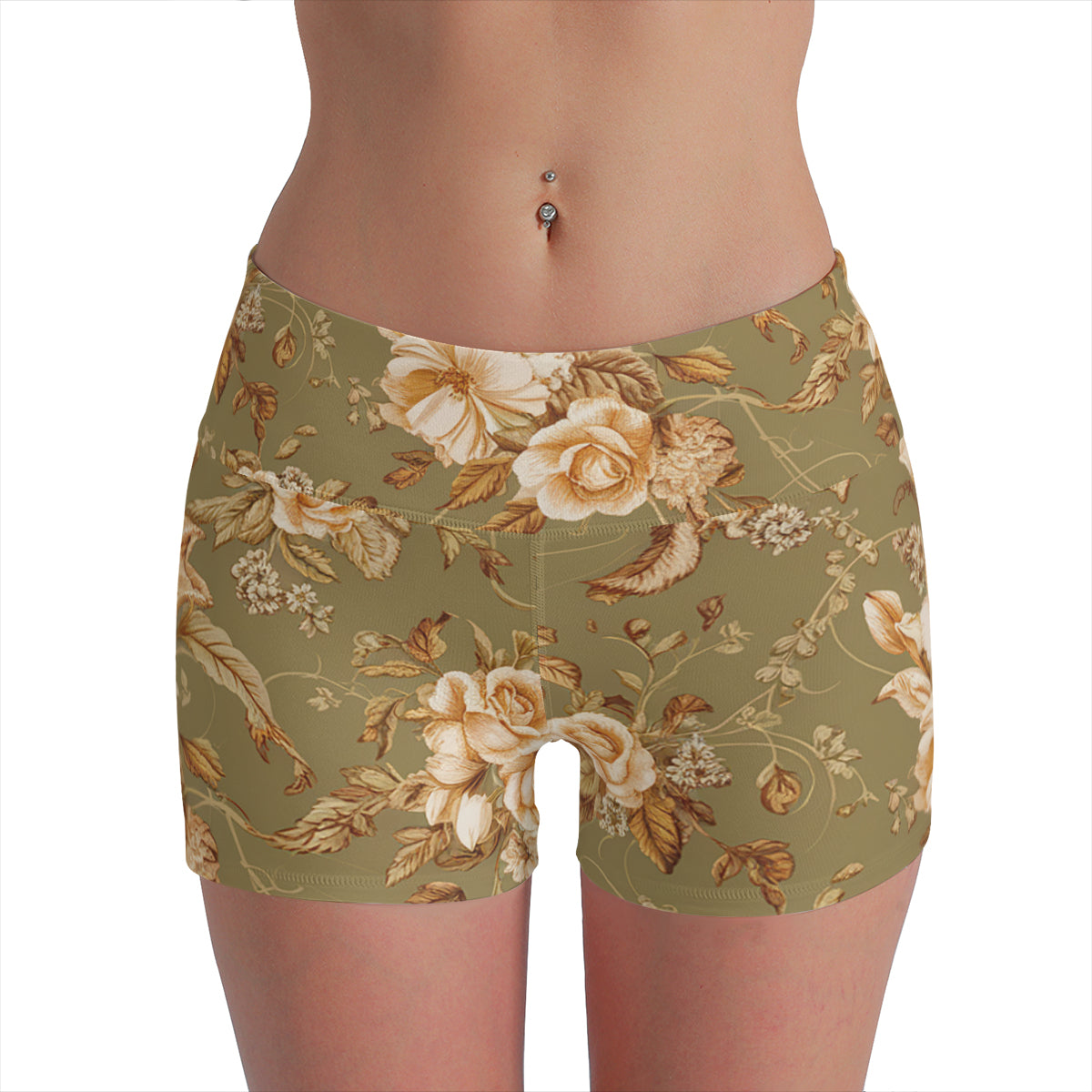 Vampire Art Retro Yoga Cycling Sports Shorts - Khaki Florals