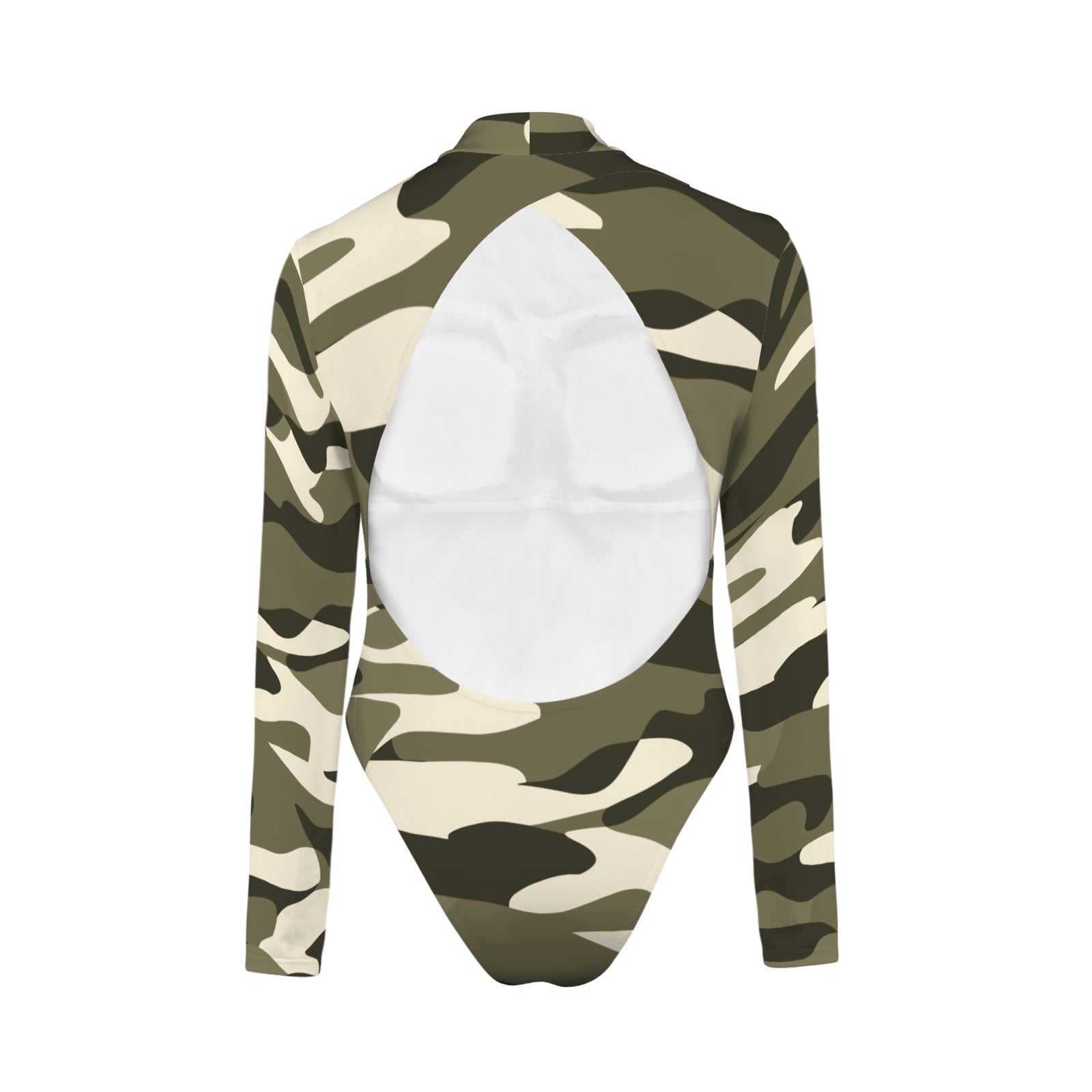 Vampire Art Retro Elegance Backless Long Sleeve Thumbhole Swimsuit - Camouflage