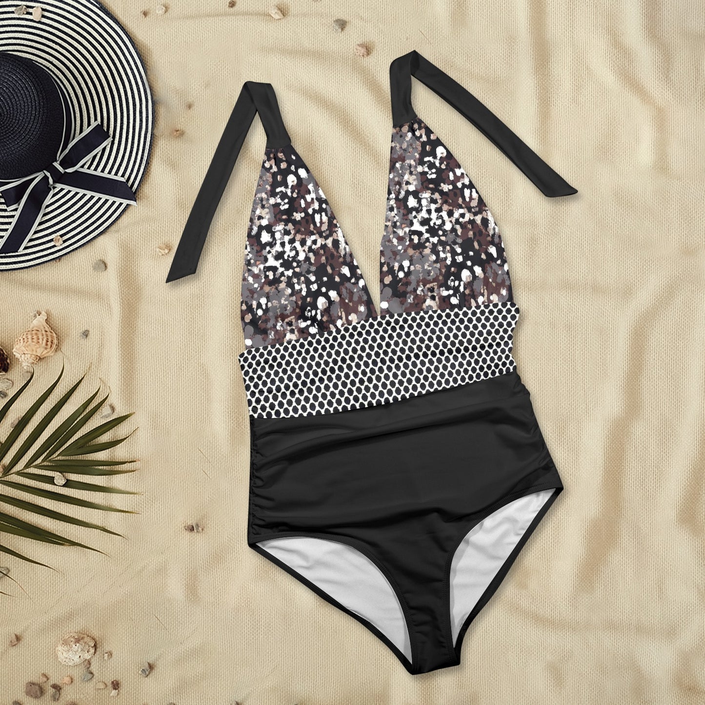 Vampire Art's Glam Plunge Halter Backless Swimsuit showcases original patterns inspired by retro styles, with a modern twist. These patterns are not only fabulous but also bold, featuring unique combinations of colors and designs that give an edgy and original touch to your swimwear collection. Whether you prefer classic elegance or a more vibrant look, there's a pattern to suit every taste.