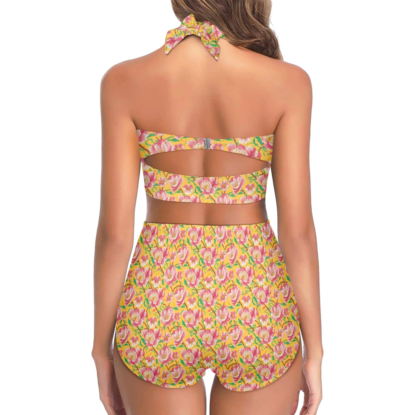 Vampire Art Vintage Charm Floral Halter Bikini - Yellow