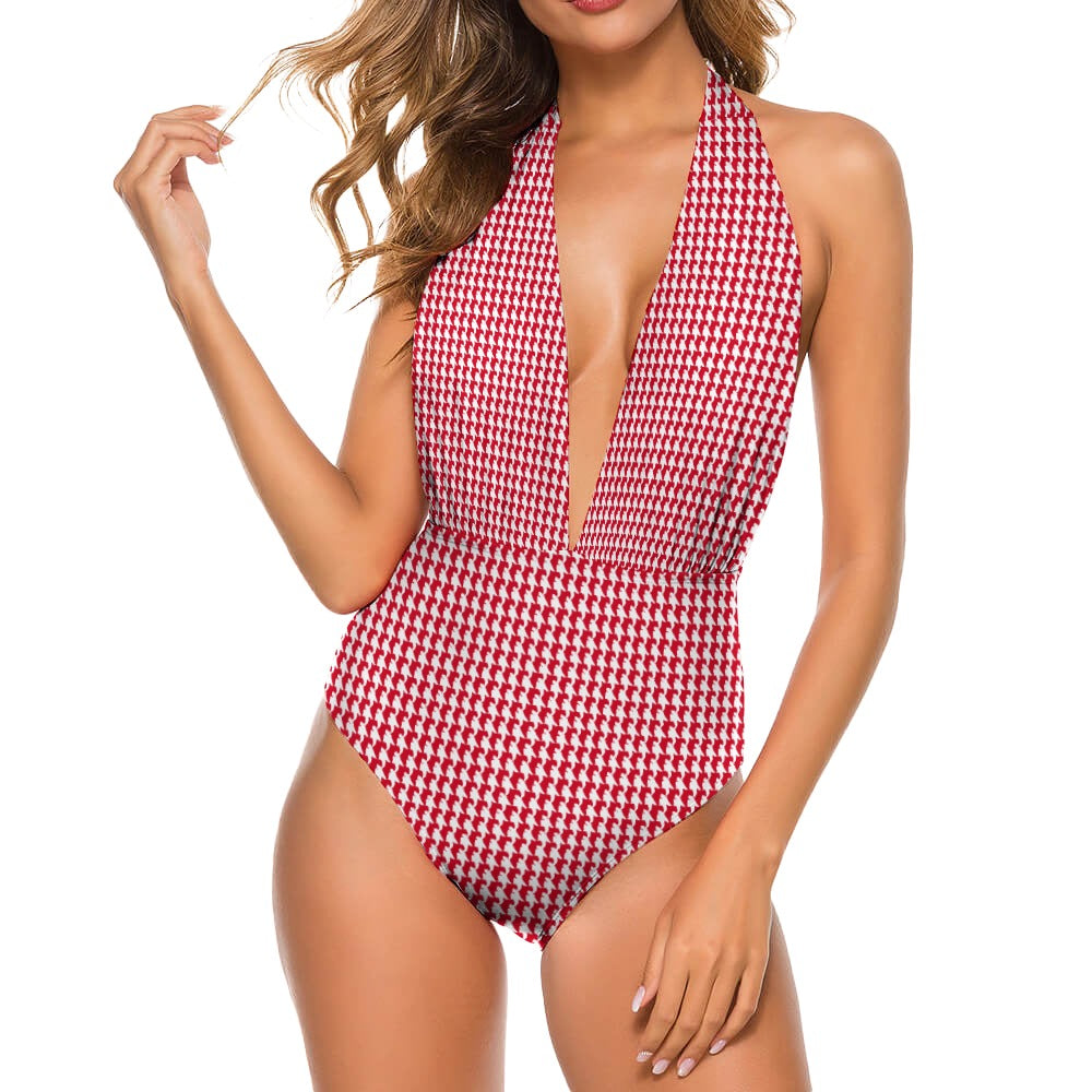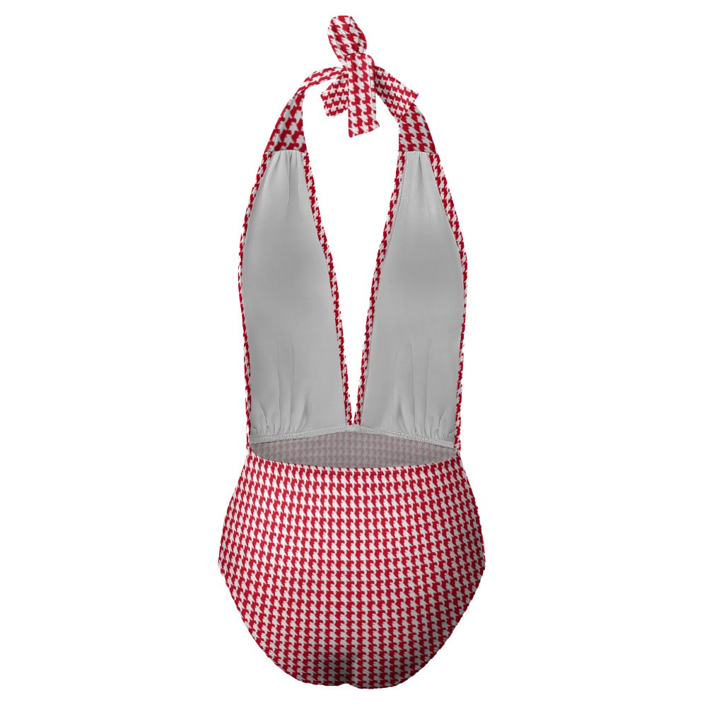 Vampire Art Retro Ladies Halter One Piece Swimsuit - Red Houndstooth