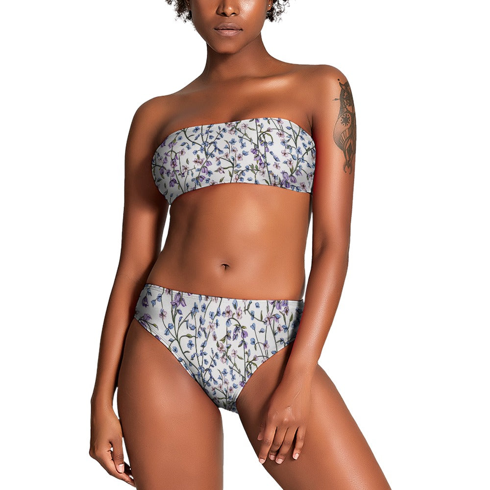 Vampire Art Two Piece Bandeau Strapless Retro Bikinis Swimsuit - Bluebells