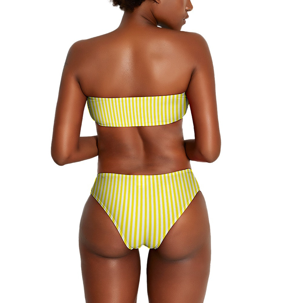 Vampire Art Two Piece Bandeau Strapless Retro Bikinis Swimsuit - Yellow Stripes
