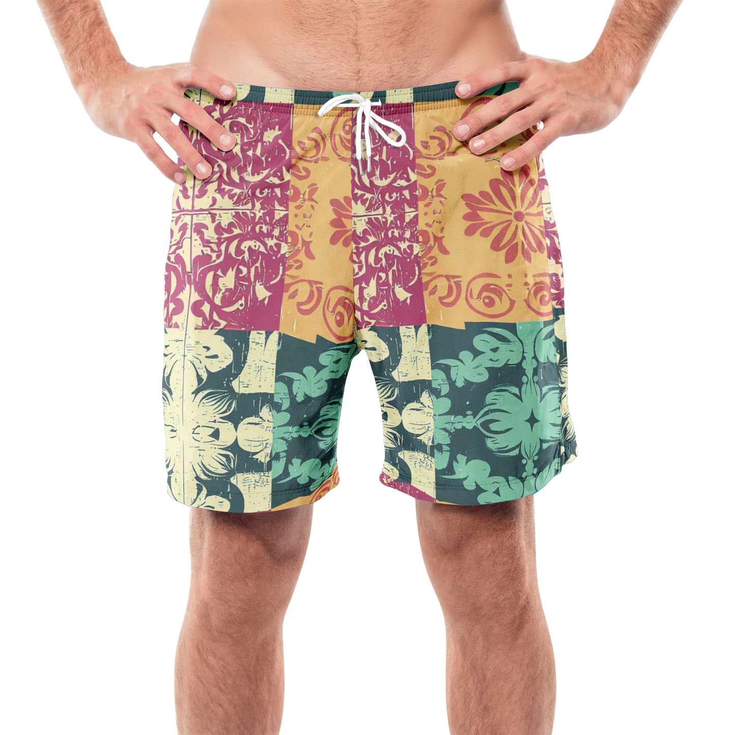 Durability and Practicality These beach shorts are not only stylish but also incredibly durable and practical. The material is resistant to abrasion and fading, ensuring that the unique grunge patchwork design maintains its edgy appeal over time. The quick-dry and easy-to-clean fabric makes these shorts a convenient choice for any summer adventure.