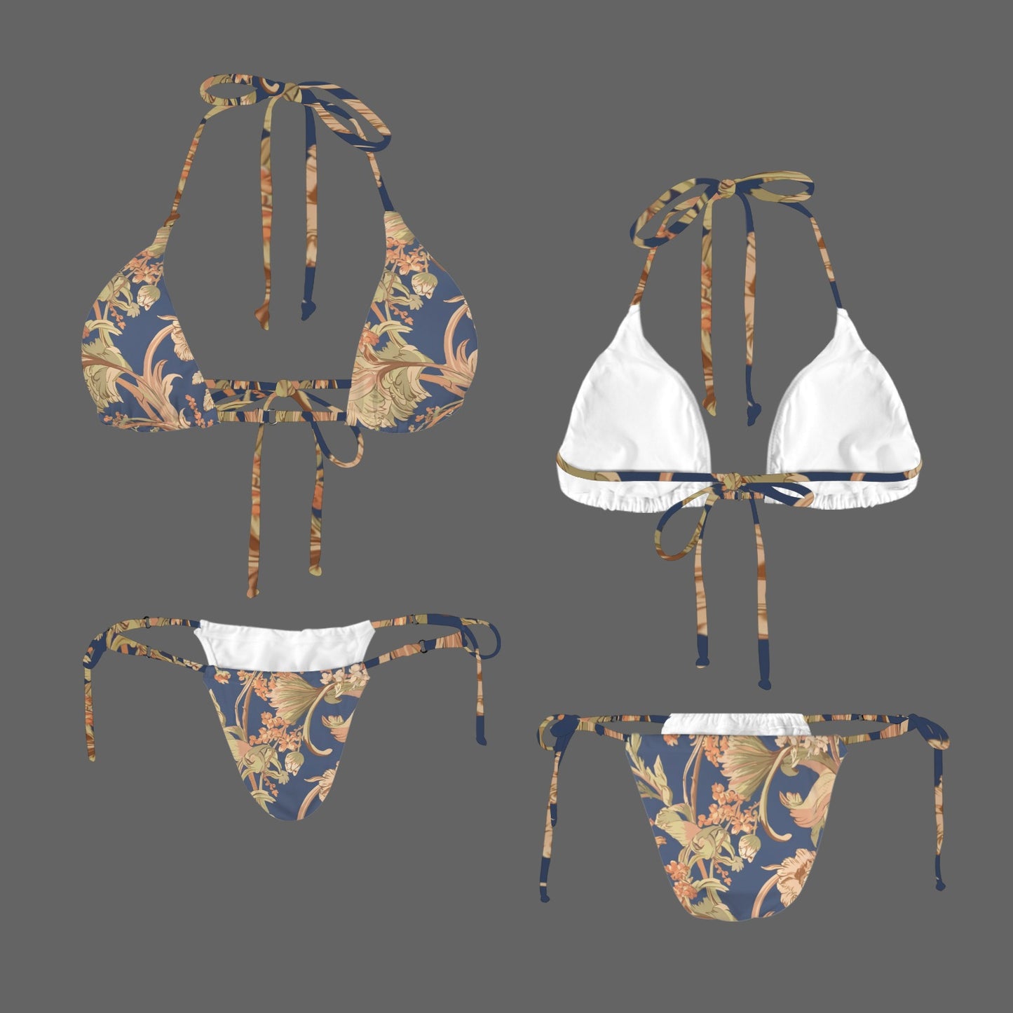 Vampire Art Glam Halter String Bikini Swimsuit Set - Art Nouveau Flowers in Blue