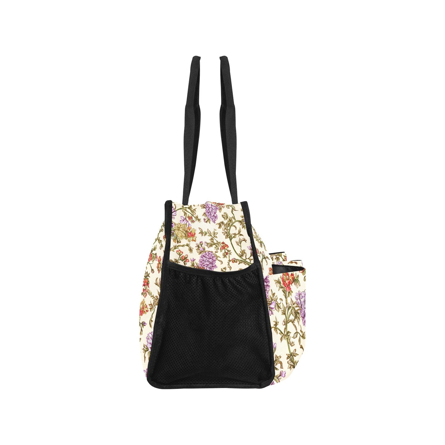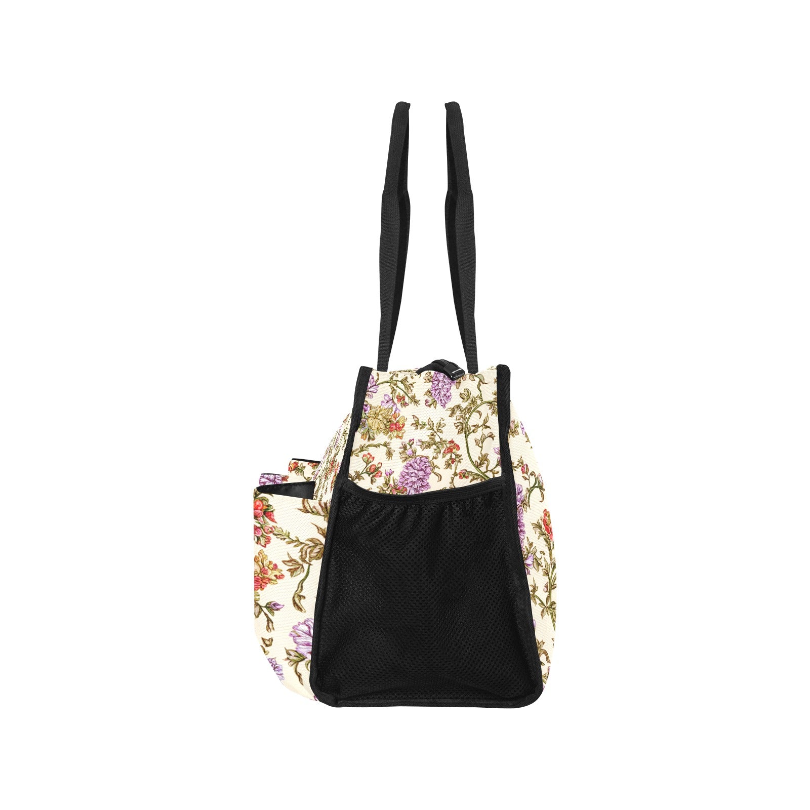 Large interior space for clothes, cosmetics, books, etc. Net pockets on both sides for holding water cups, towels, etc. Two small pockets in front for storing smaller items. Beautiful appearance, stylish, light weight, easy to carry. Also perfect for traveling as a cabin bag.