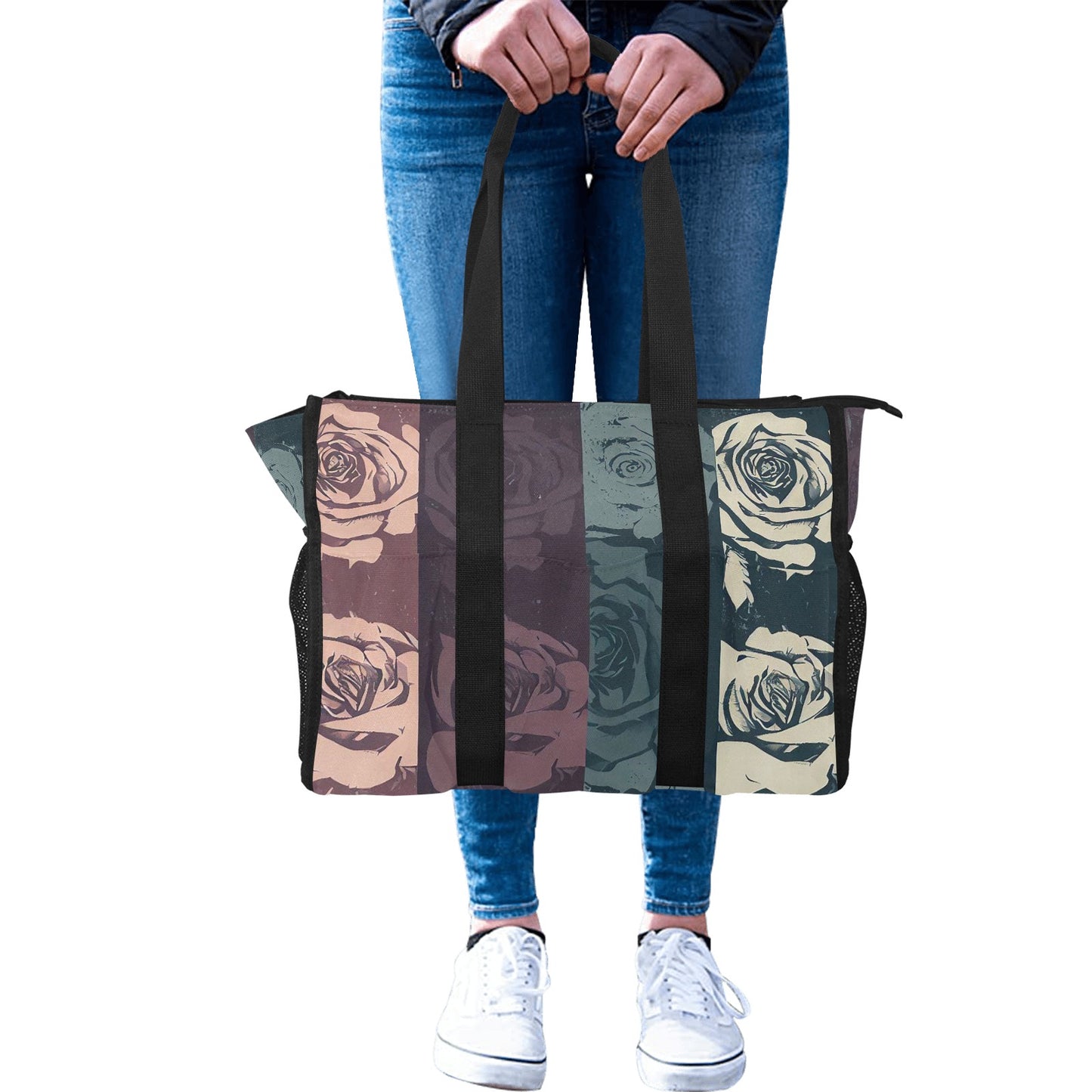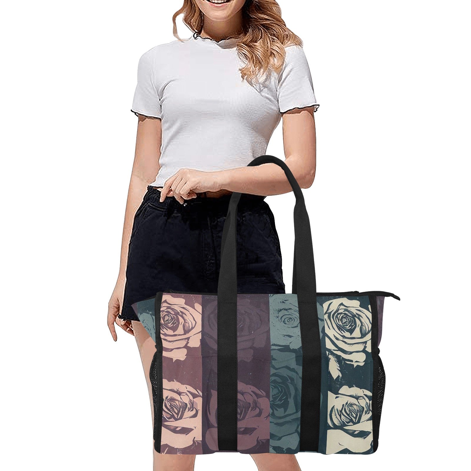 Vampire Art Retro Large Multi-pocket Beach Bag - Grunge Roses