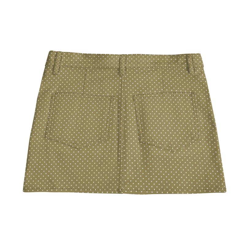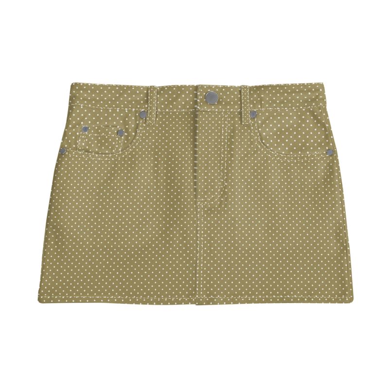 Vampire Art Retro Charm Mini Denim Skirt - Olive Spotty