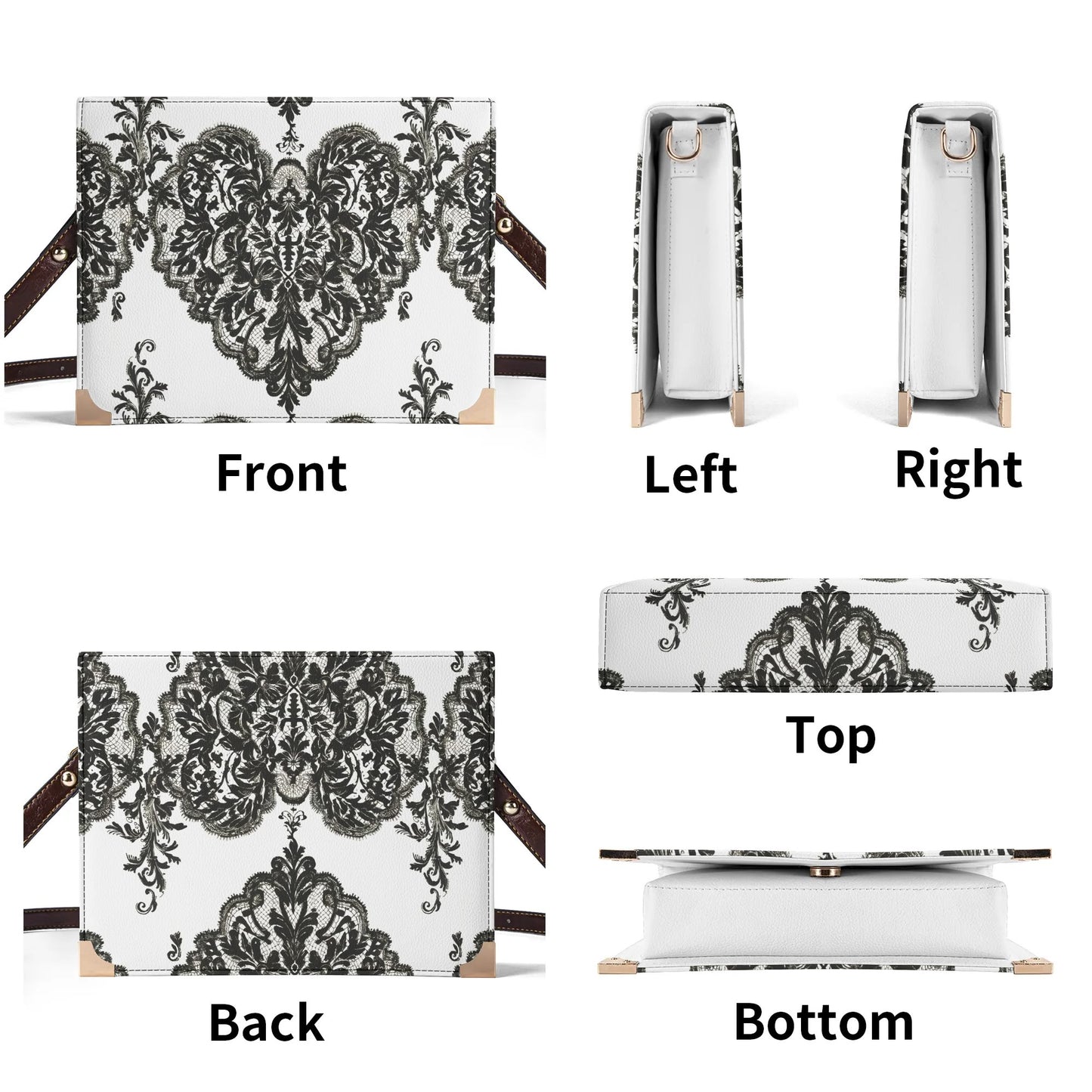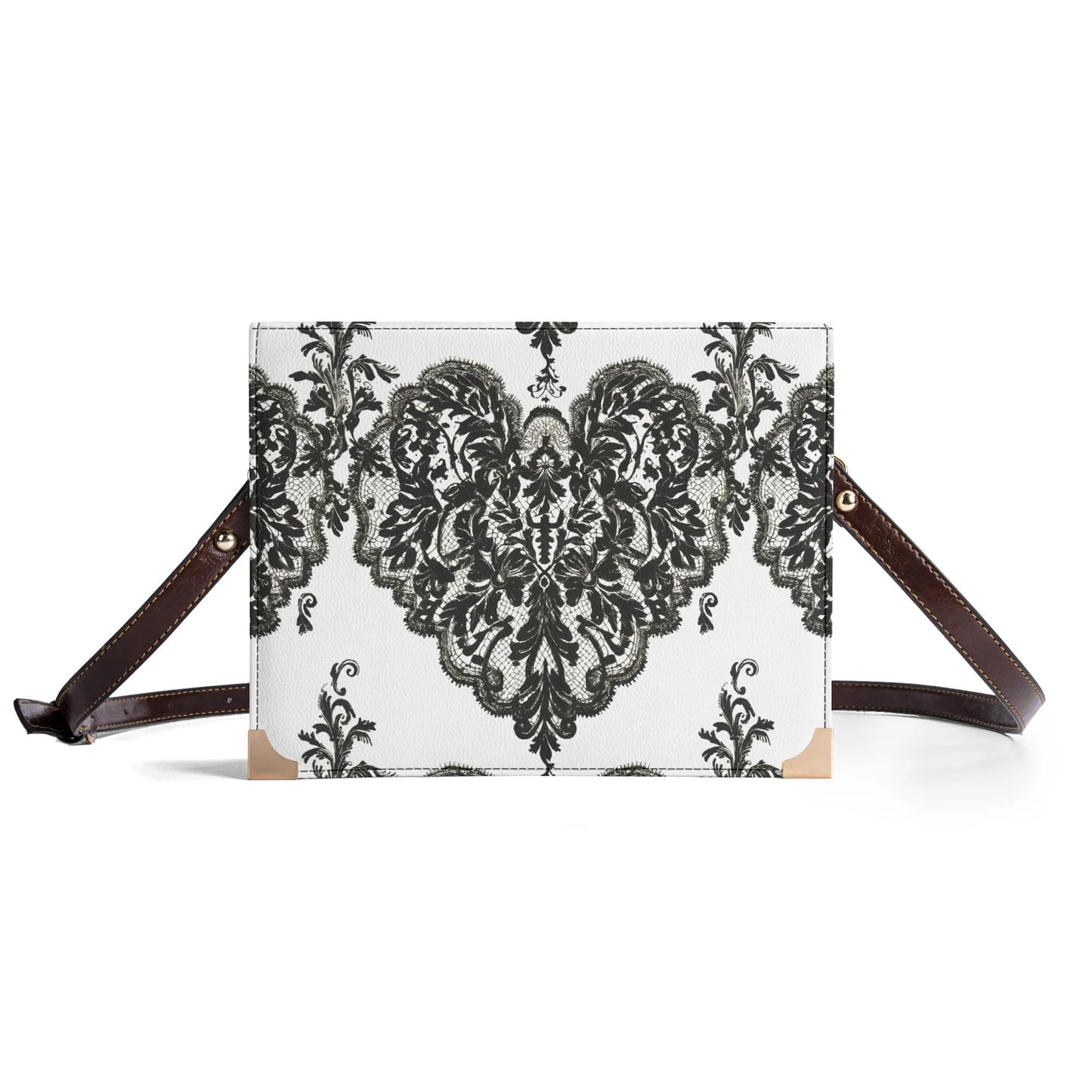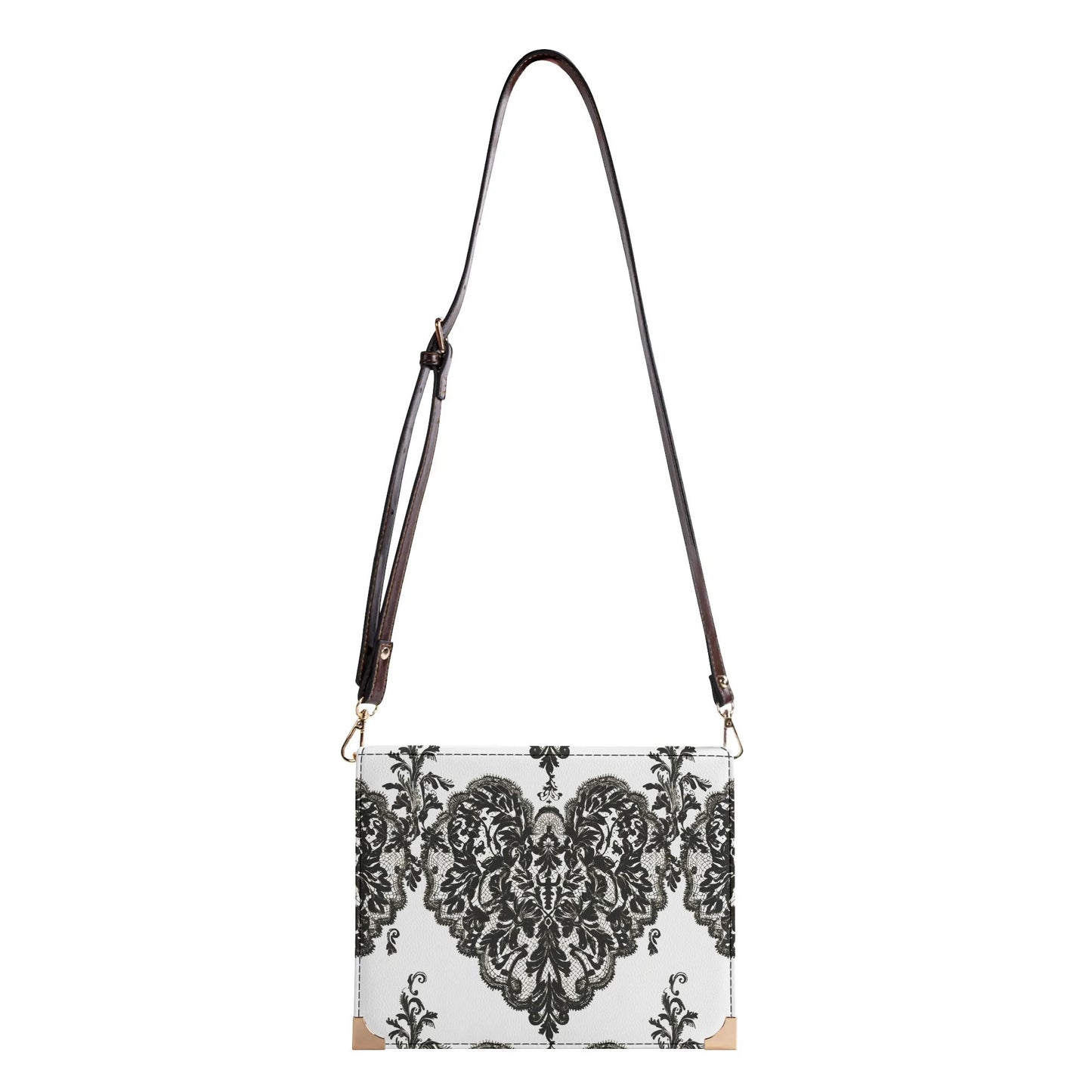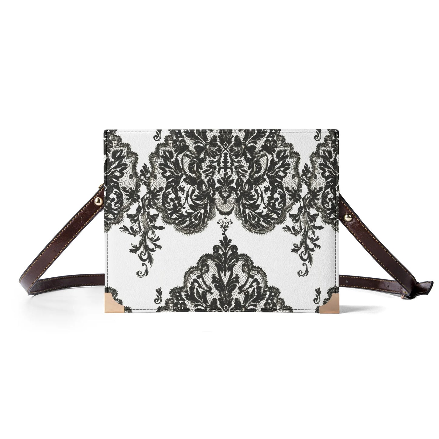 Vampire Art Dark Academia Book Cover Crossbody Bag - Black and White Goth Damask