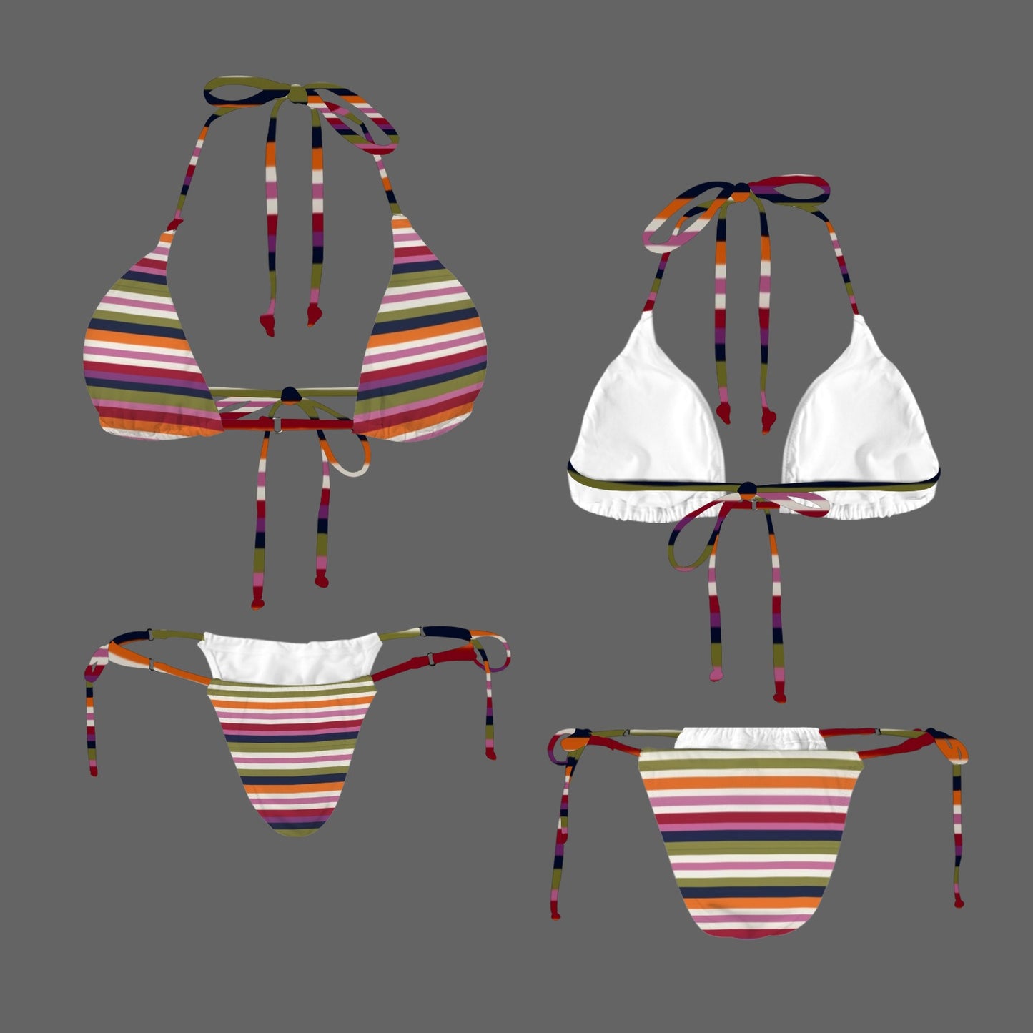 • Design: Adjustable halter and back ties, string thong bikini bottom with small ring metal accessories