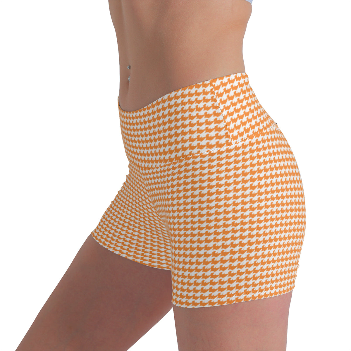 Vampire Art Retro Yoga Cycling Sports Shorts - Orange Houndstooth