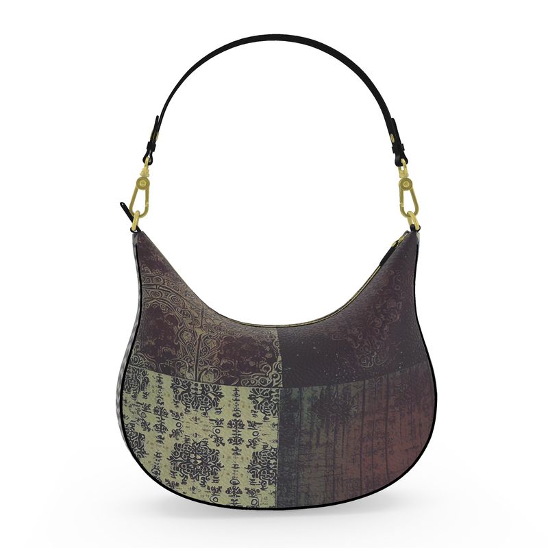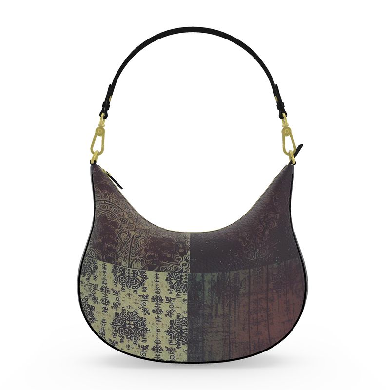 Design and Aesthetics The bag features an exclusive Grunge patchwork design, original to Vampire Art, which captures the essence of the alternative fashion scene. This design brings together various textures and patterns, creating a visually stunning and edgy piece that stands out in any crowd. The Curve Hobo Bag, with its sleek and flowing lines, offers a modern twist on the classic hobo style, making it a perfect accessory for fashion-forward individuals.