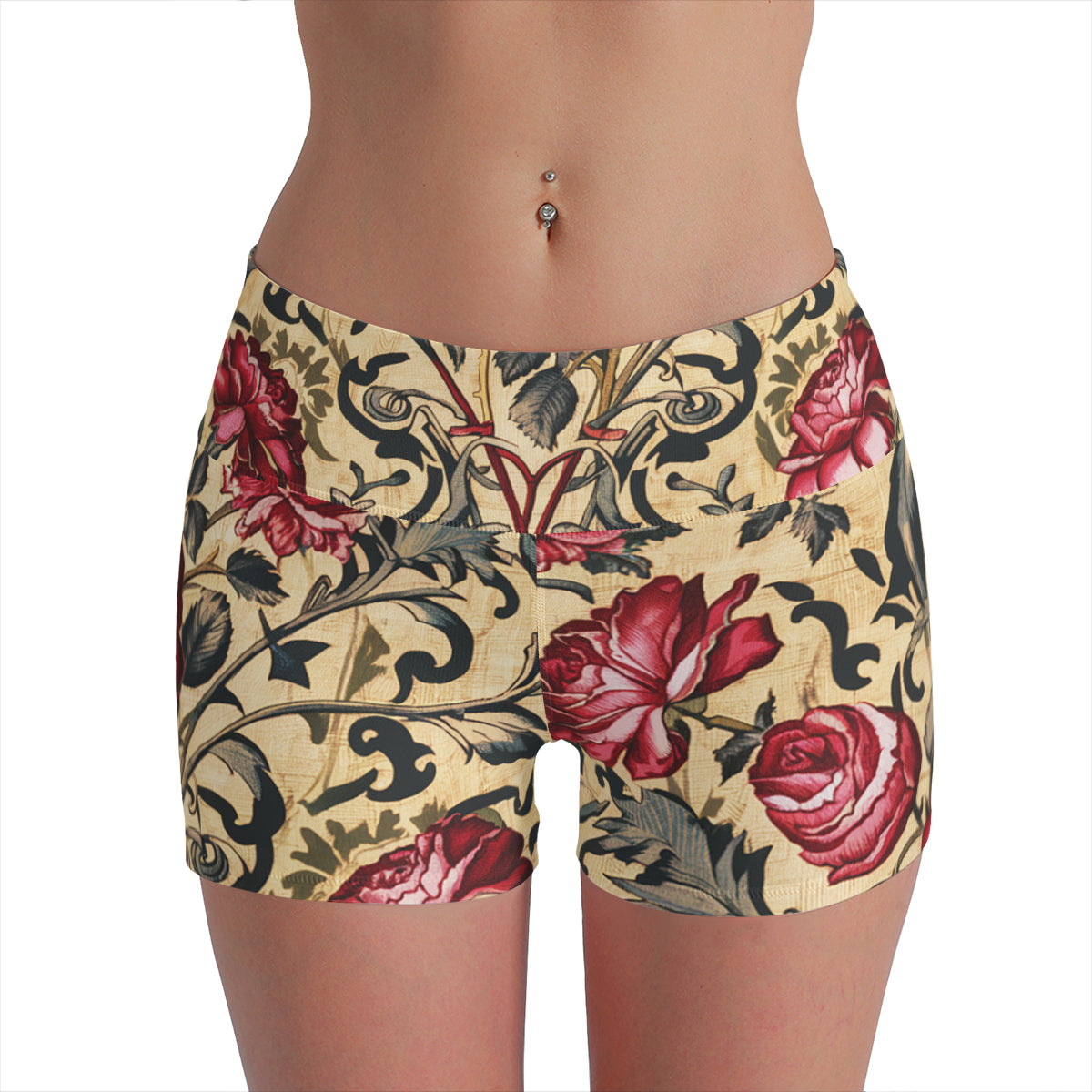 Vampire Art Retro Yoga Cycling Sports Shorts - Victorian Roses