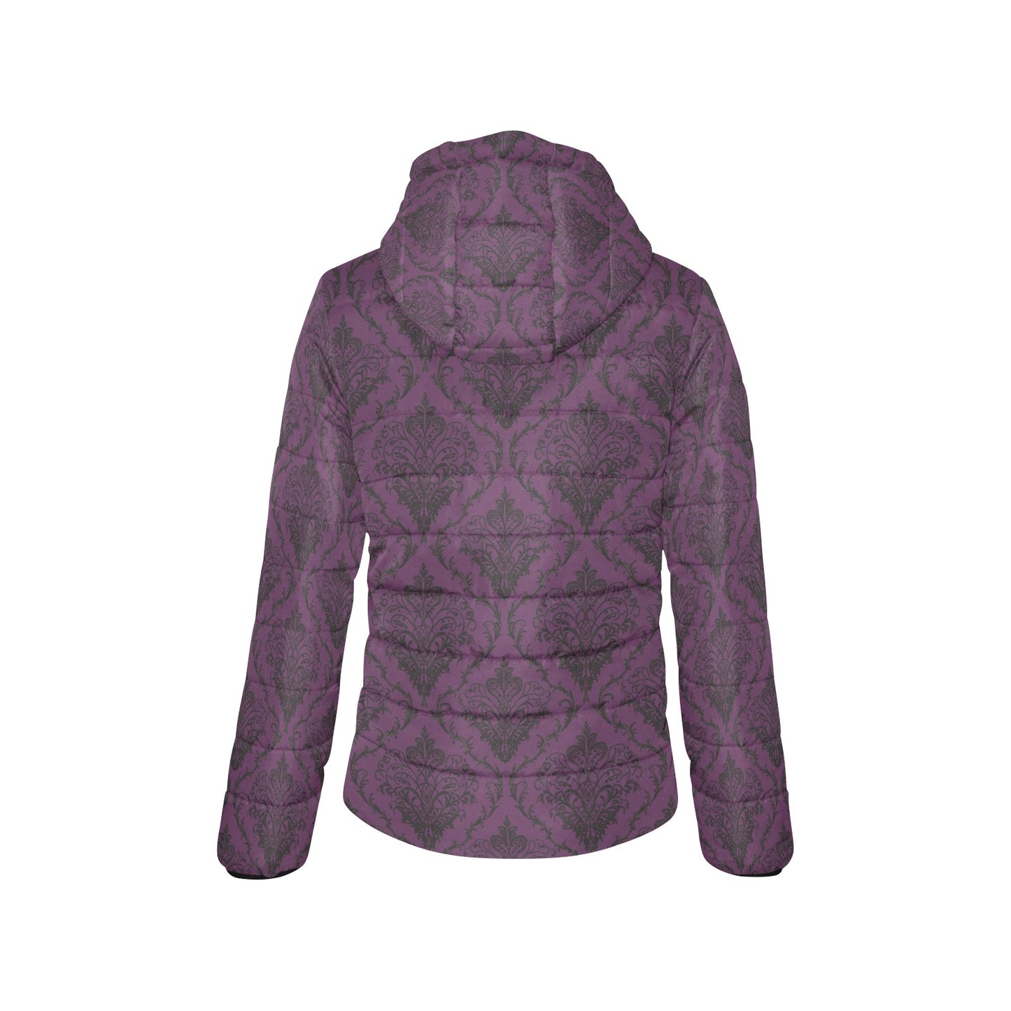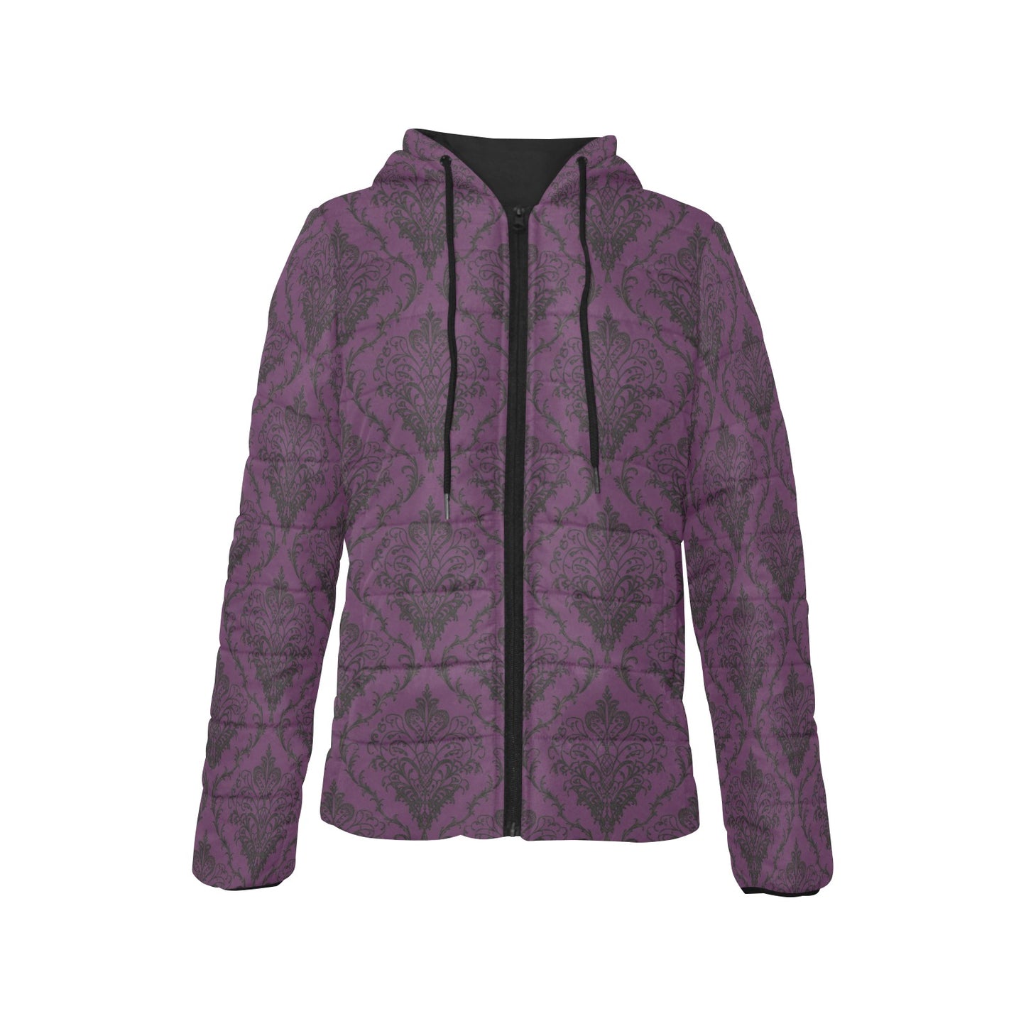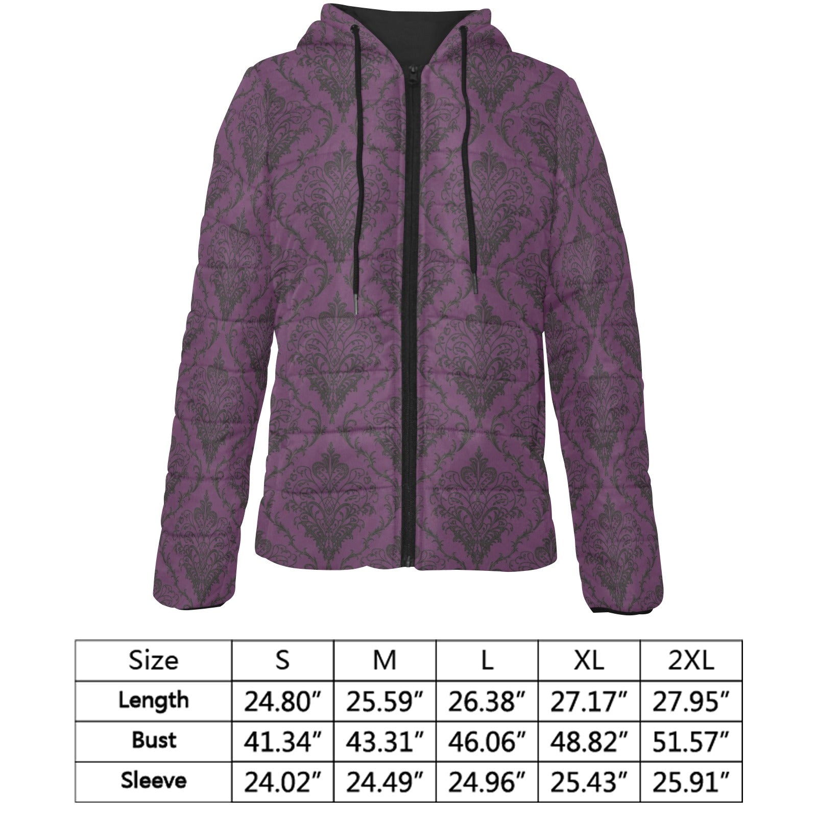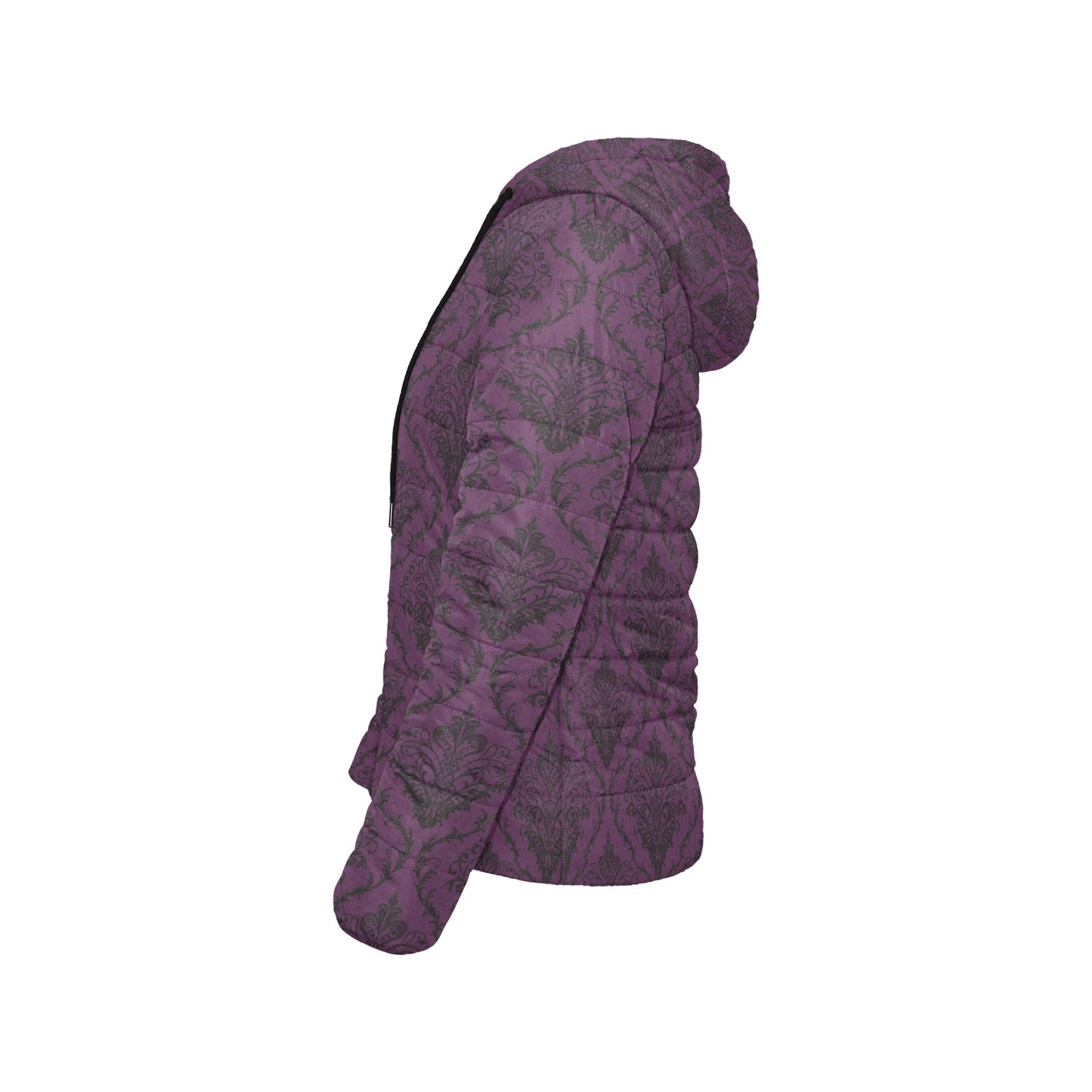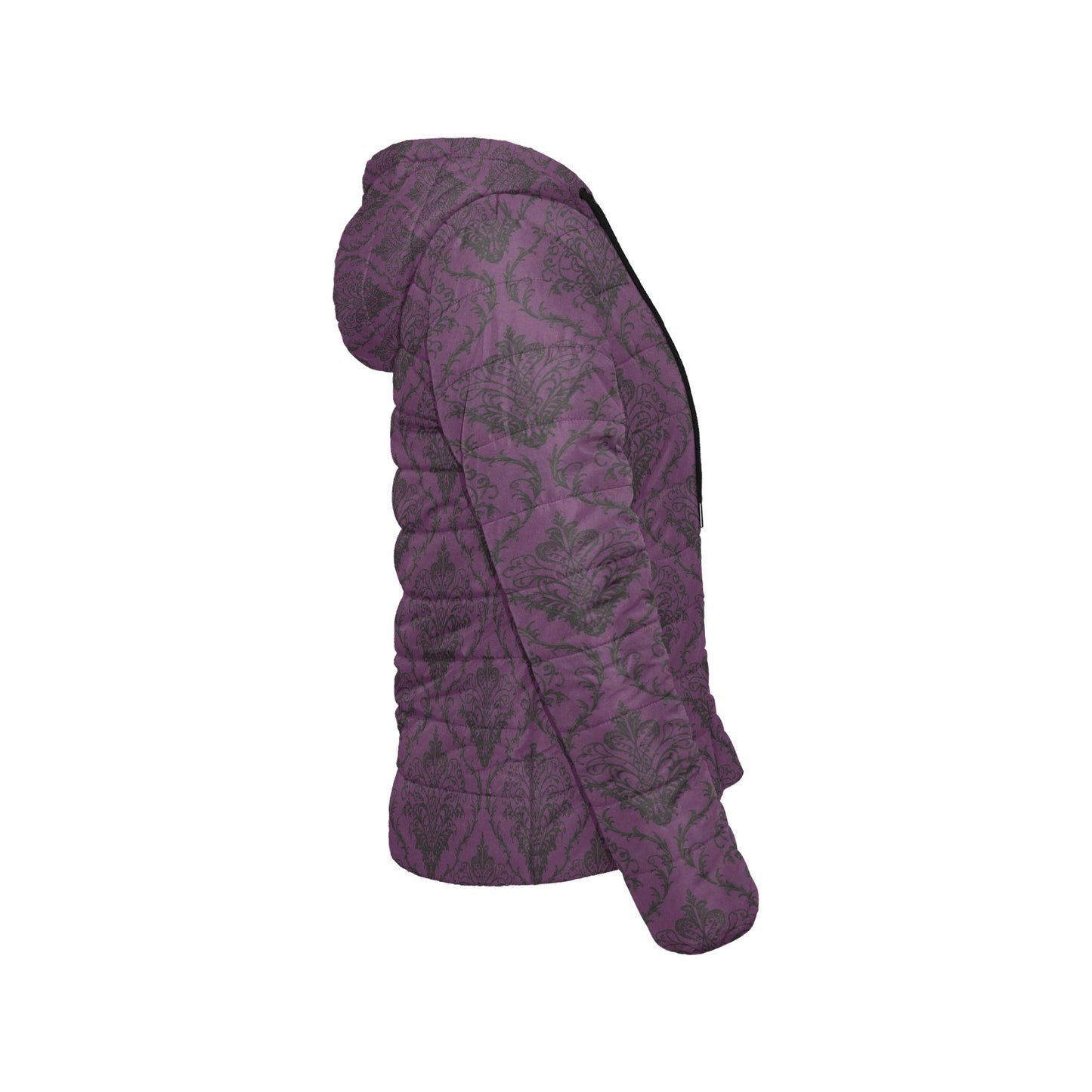 Vampire Art Urban Gothic Women's Padded Hooded Jacket - Purple Victorian Lace