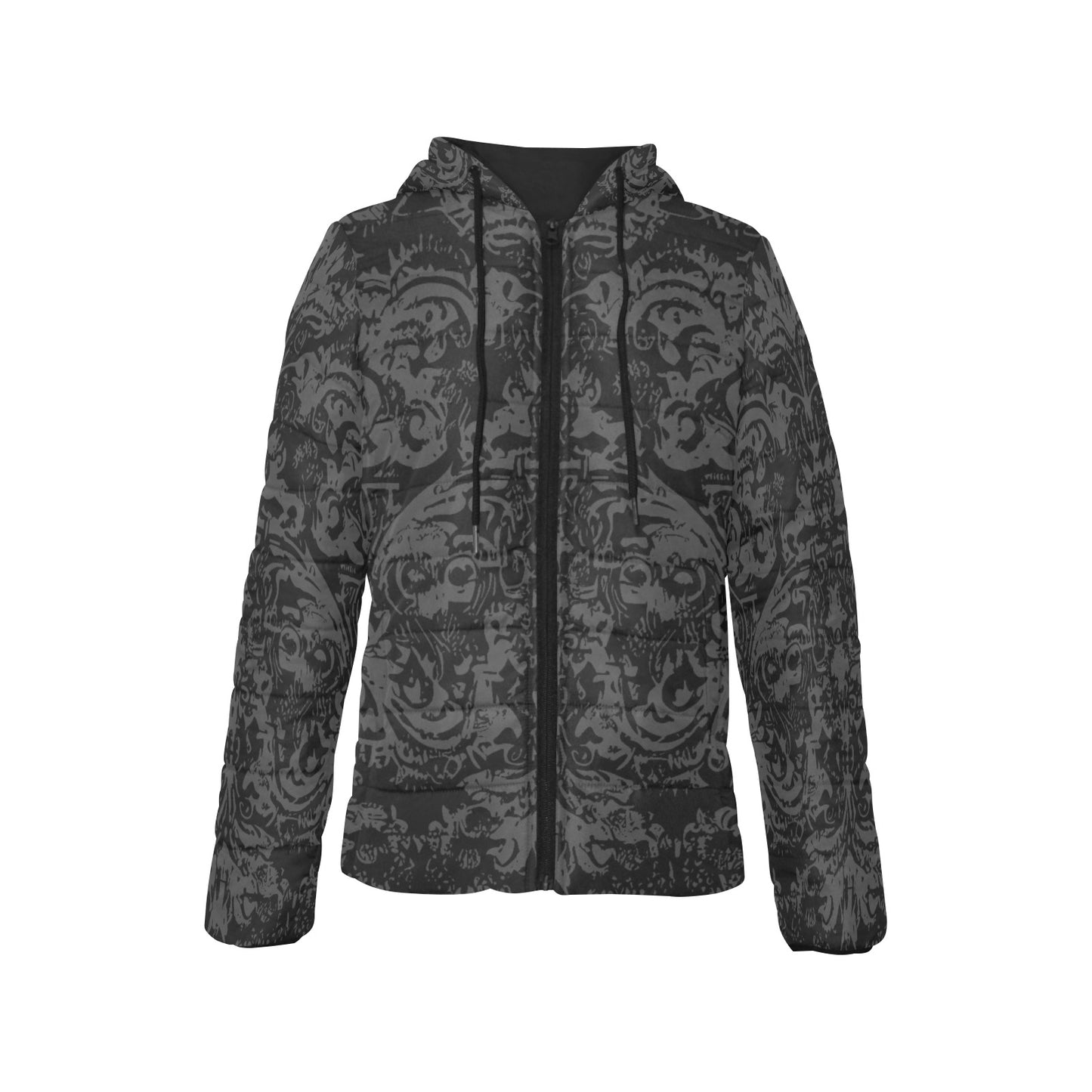Vampire Art Urban Gothic Women's Padded Hooded Jacket - Black Grunge Damask