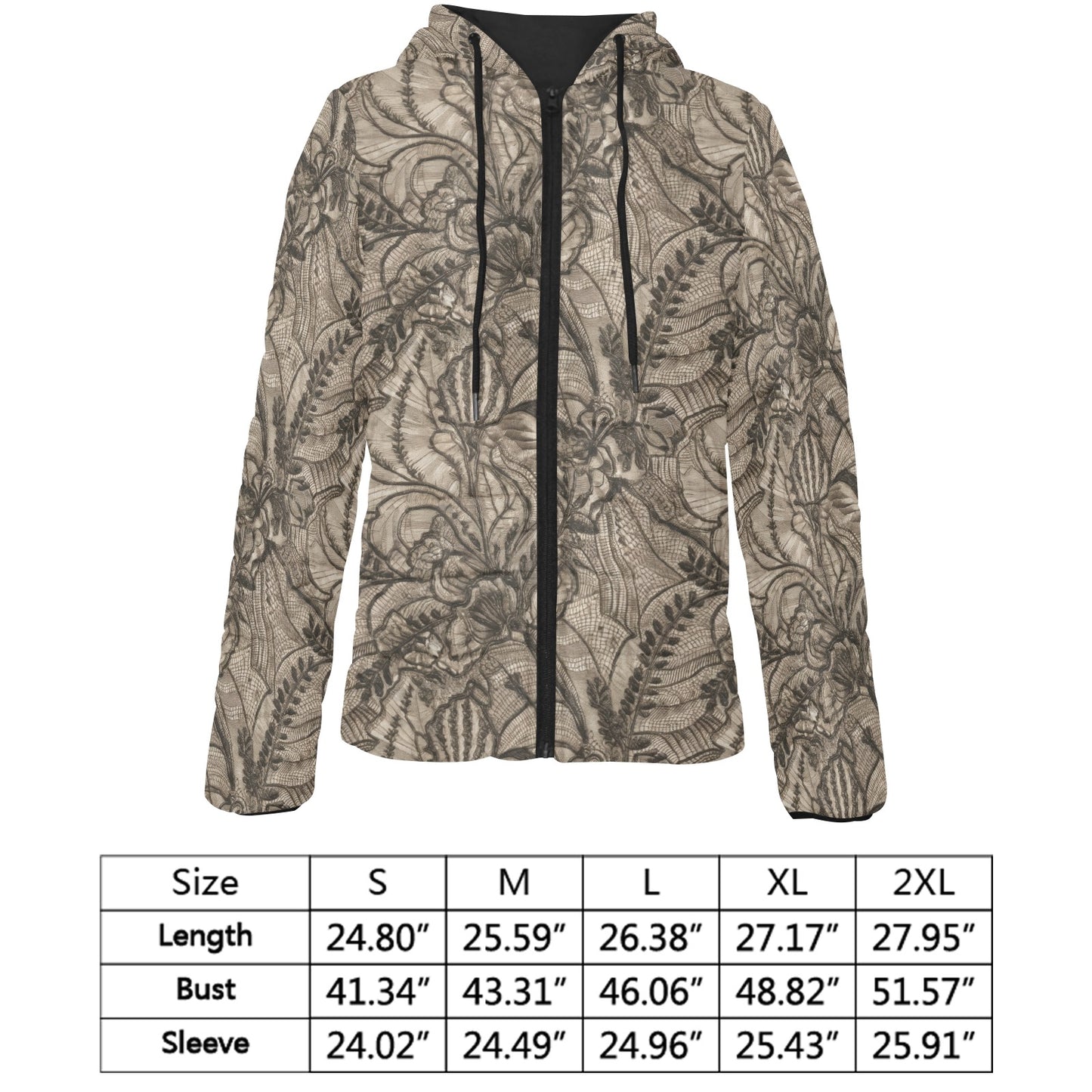 Vampire Art Urban Gothic Women's Padded Hooded Jacket - Victorian Lace
